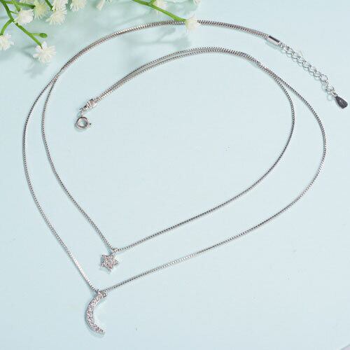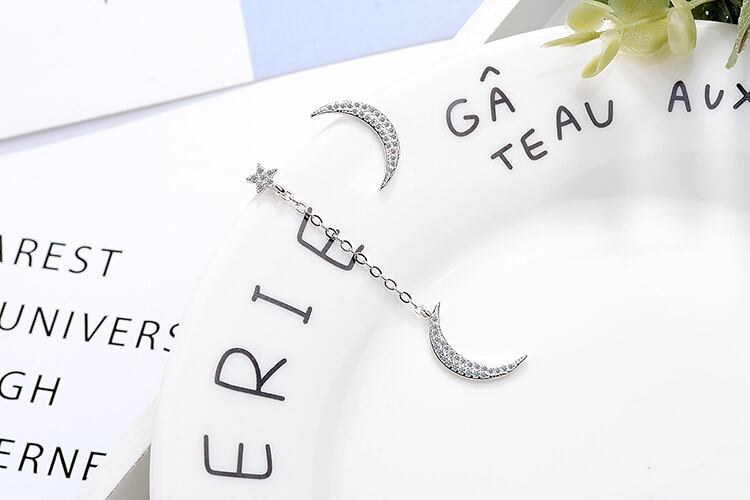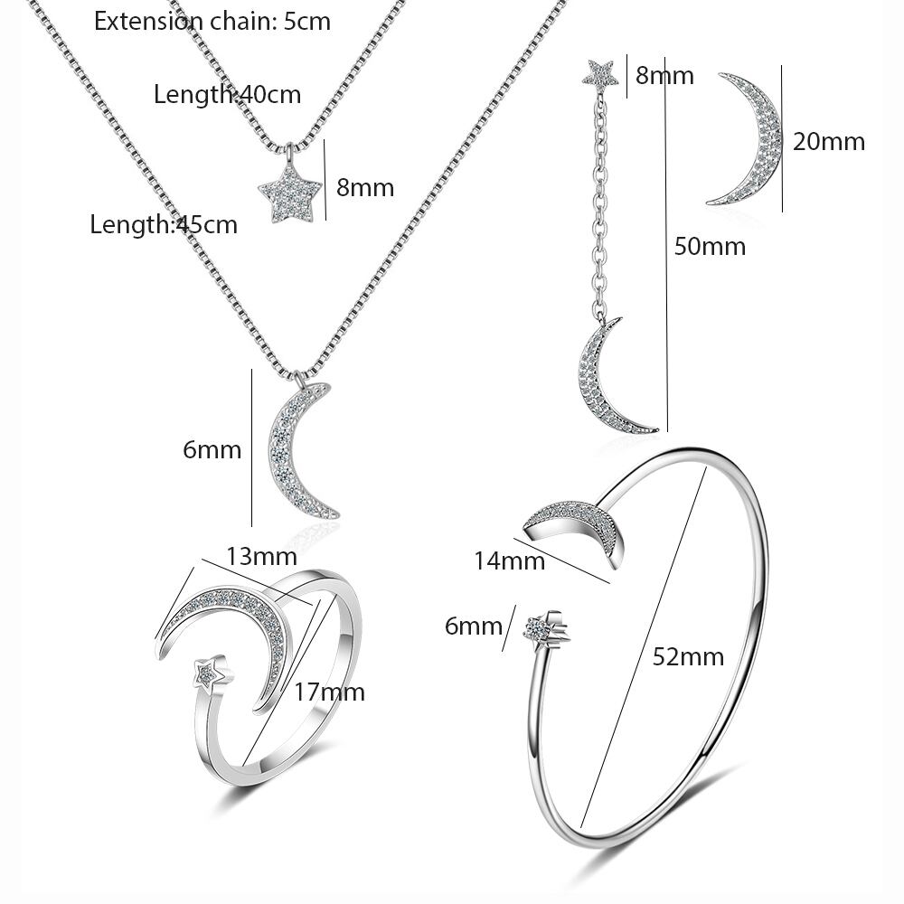 送料無料 ANENJERYシルバーカラームーンとスターネックレスブレスレットリングイヤリングウェディングジュエリーセットマイクロジルコン女性 レース 指輪 銀 アクセサリー AE165543493805166