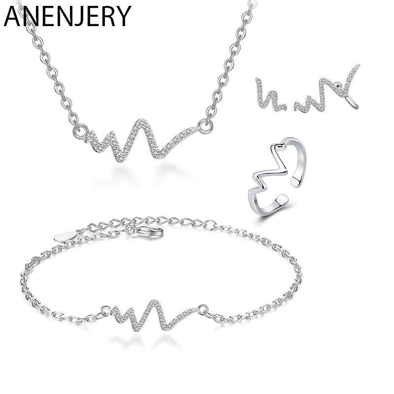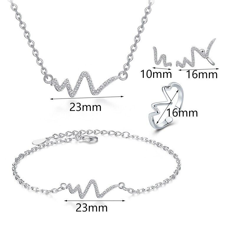 送料無料 ウェーブブライダルキュービックジルコニアジュエリーセットレディースネックレス+イヤリング+リング+ブレスレットウェディングジュエリーギフト レース 指輪 風信子石 アクセサリー AE165528893142497