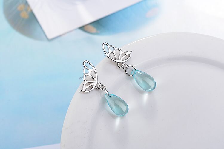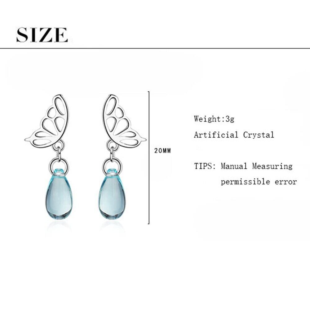 送料無料 ANENJERYシルバーカラーかわいいシルバーカラージュエリー人工クリスタルウォータードロップバタフライイヤリングレディースガールS-E725 大人ガーリー スウィート キュート カジュアル 指輪 銀 アクセサリー AE165568352249993