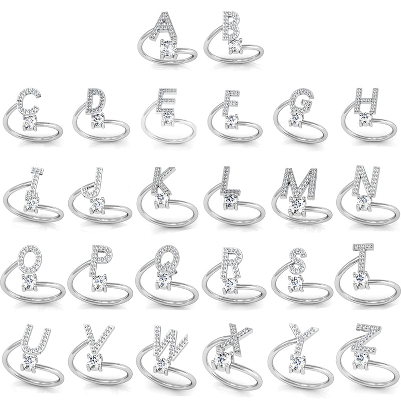 送料無料 ANENJERYシルバーカラーA-Z26文字イニシャルリングシャイニーマイクロジルコンアジャスタブルリングラバーギフトS-R400 指輪 銀 アクセサリー AE165576101692042