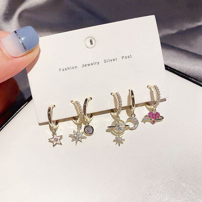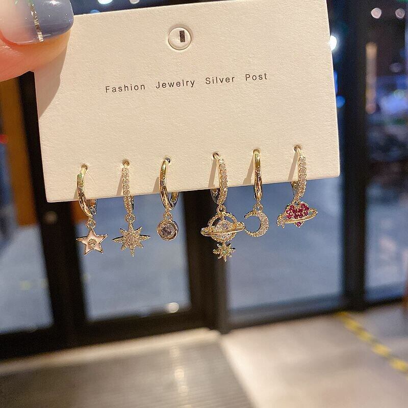 送料無料 セットスターアンドムーンプラネットフープピアスセットロングゴールドカラーイヤリングレディースジュエリーギフト2022ギフトS-E1283 指輪 アクセサリー AE165591023099317