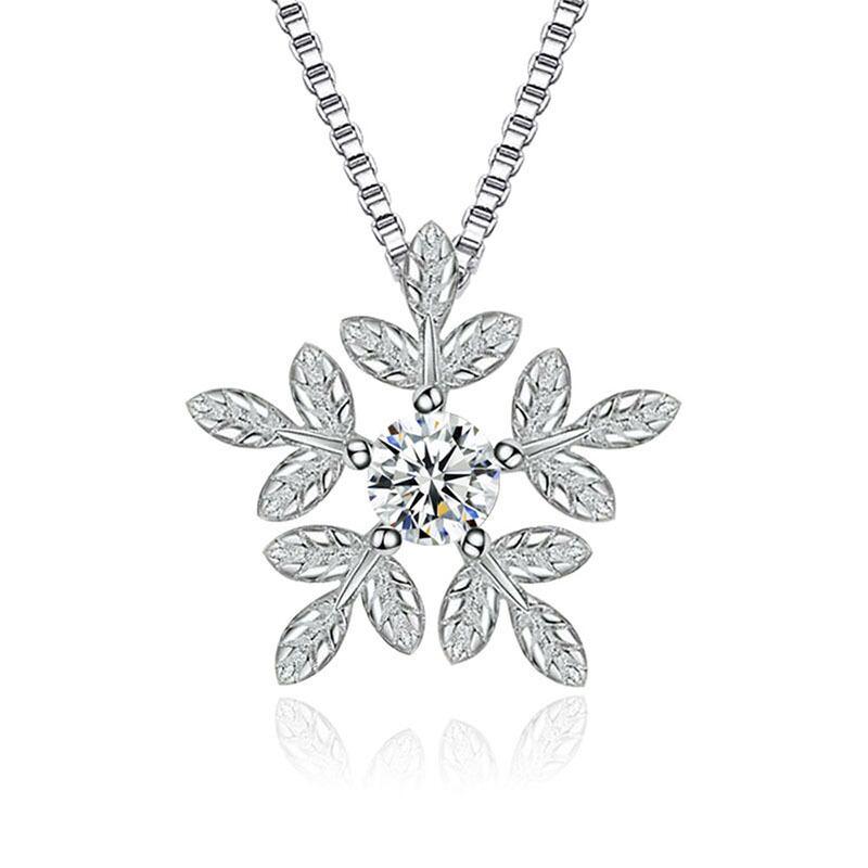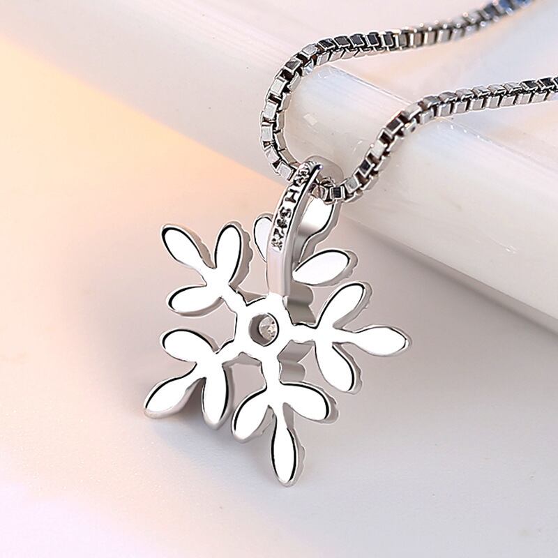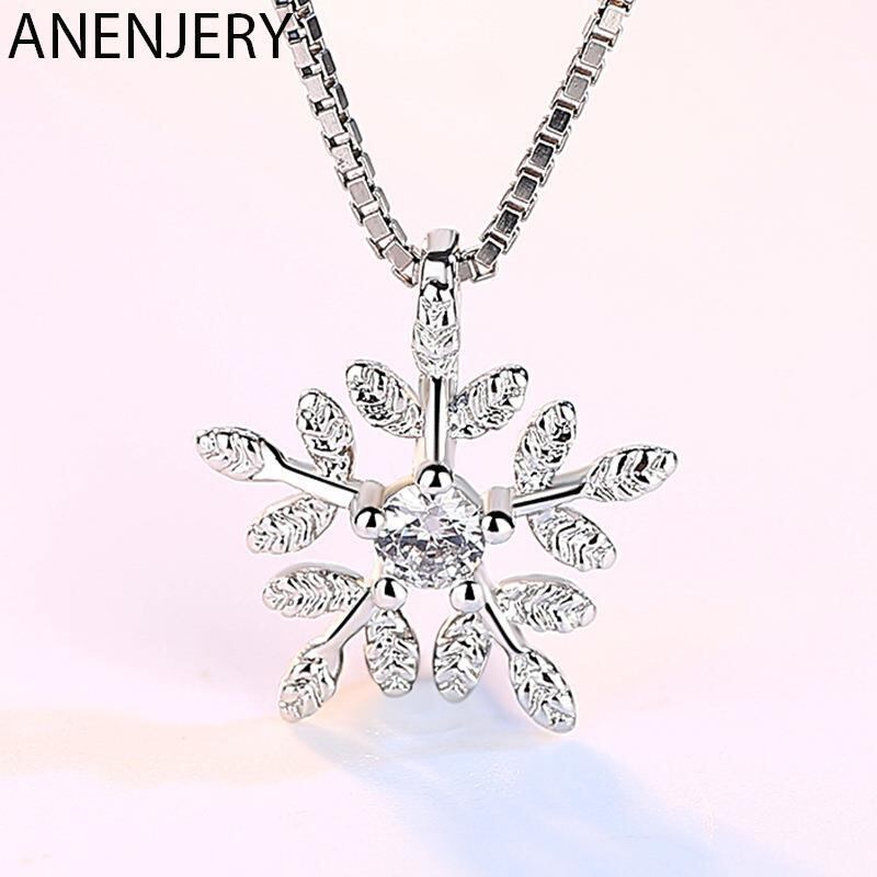 送料無料 ANENJERYシルバーカラージルコニアスノーフレークネックレス女性ベストクリスマスギフトジュエリー配送S-N142 レース 銀 風信子石 アクセサリー AE165538743944438