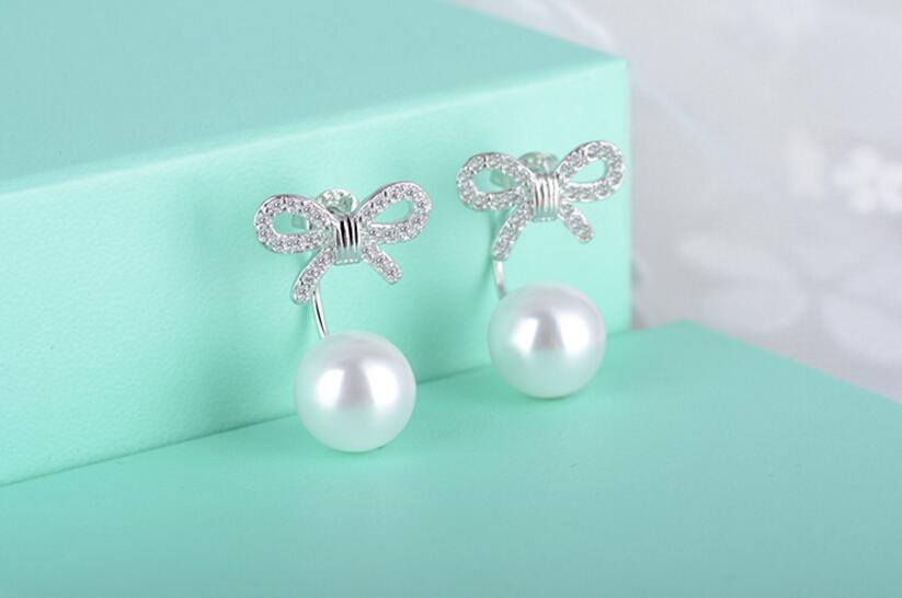 送料無料 ANENJERYシルバーカラー絶妙な気質抗アレルギーボウノットジルコンイヤリングパールイヤージュエリーレディースS-E371 リボン 真珠 指輪 銀 アクセサリー AE165562921088617