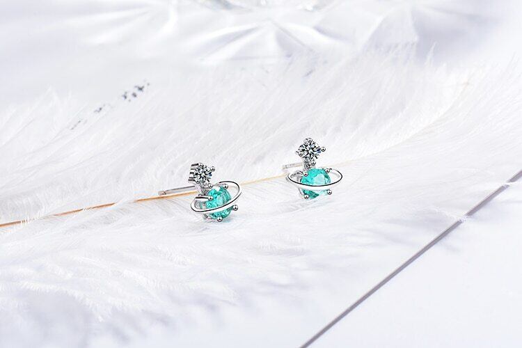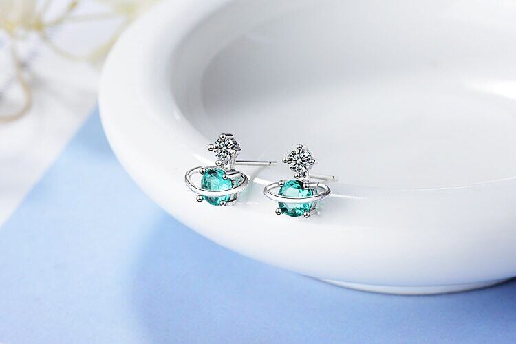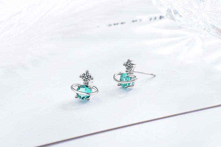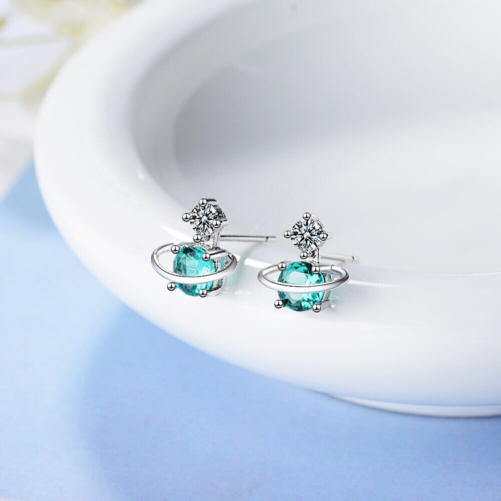 送料無料 ANENJERYシルバーカラーキュートグリーンユニバースプラネットスターピアスキラキラジルコンレディースガールズギフトジュエリーS-E741 イヤリング 大人ガーリー スウィート カジュアル リング 指輪 銀 アクセサリー AE165525570592269