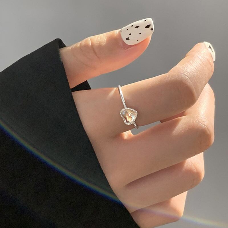 送料無料 ANENJERYシルバーカラーハートクリスタルオープニングリング結婚指輪女性高級ジュエリーギフト 銀 アクセサリー AE165546423663430