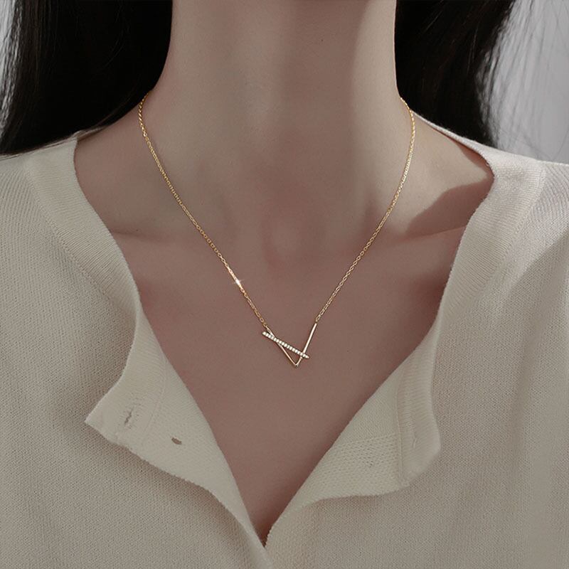 送料無料 ANENJERYシルバーカラーV字型ネックレス女性幾何学的クロス鎖骨チェーンネックレスジュエリーギフト レース 銀 アクセサリー AE165539298589890