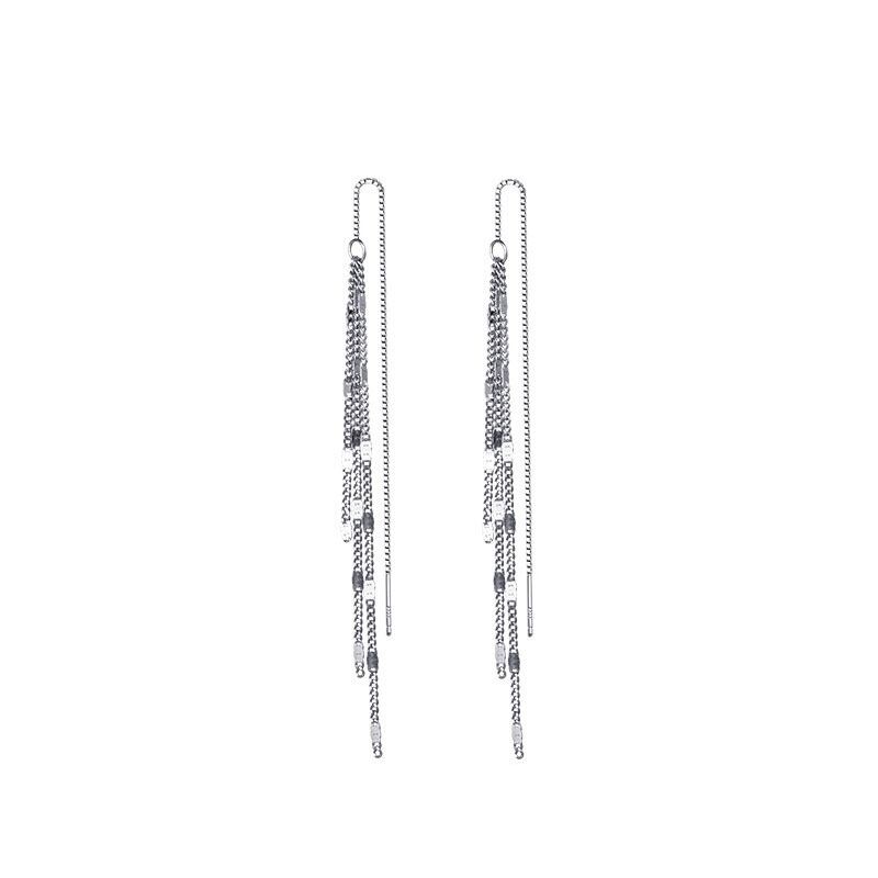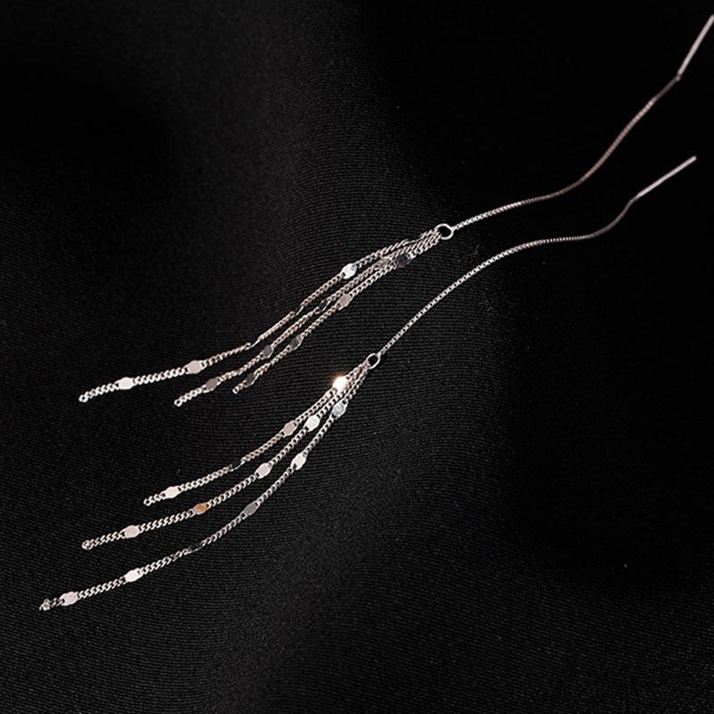 送料無料 ANENJERYシルバーカラーロングチェーンピアス女性シンプルハンドメイドシャイニーテルピアスpendientesplatalargo イヤリング リング 指輪 銀 アクセサリー AE165551206948980