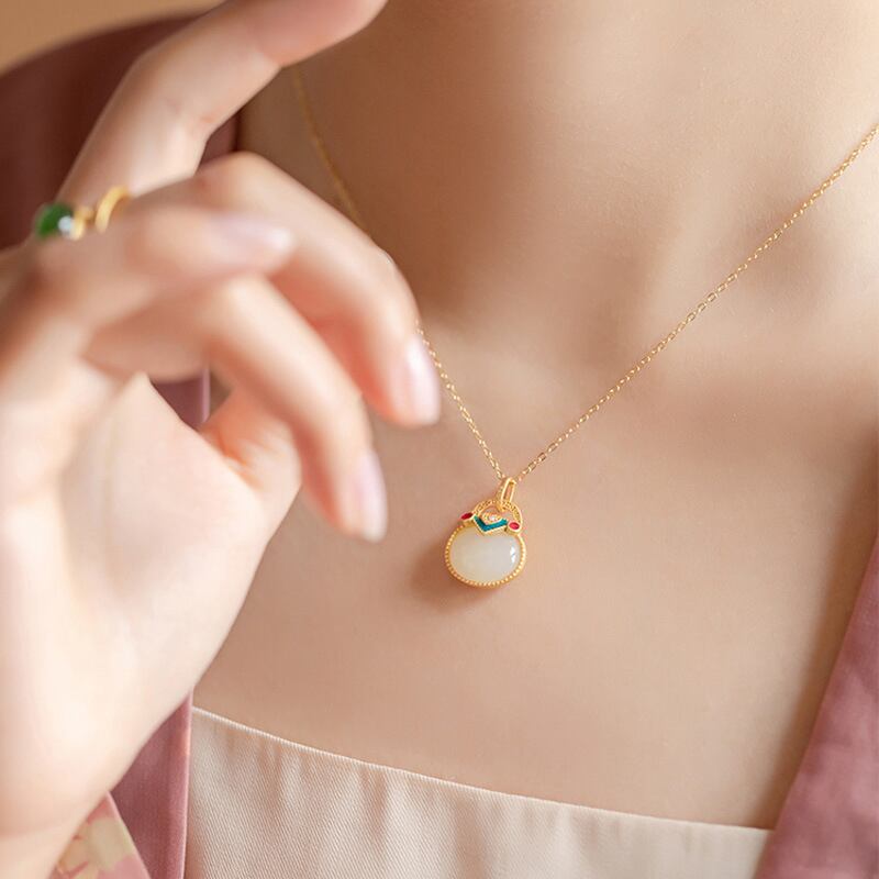 送料無料 ANENJERYシルバーカラーカッパーホワイトストーンロックペンダントゴールデンネックレス女性用高級鎖骨チェーンアクセサリーバースデーギフト レース 銀 アクセサリー AE165510213404251