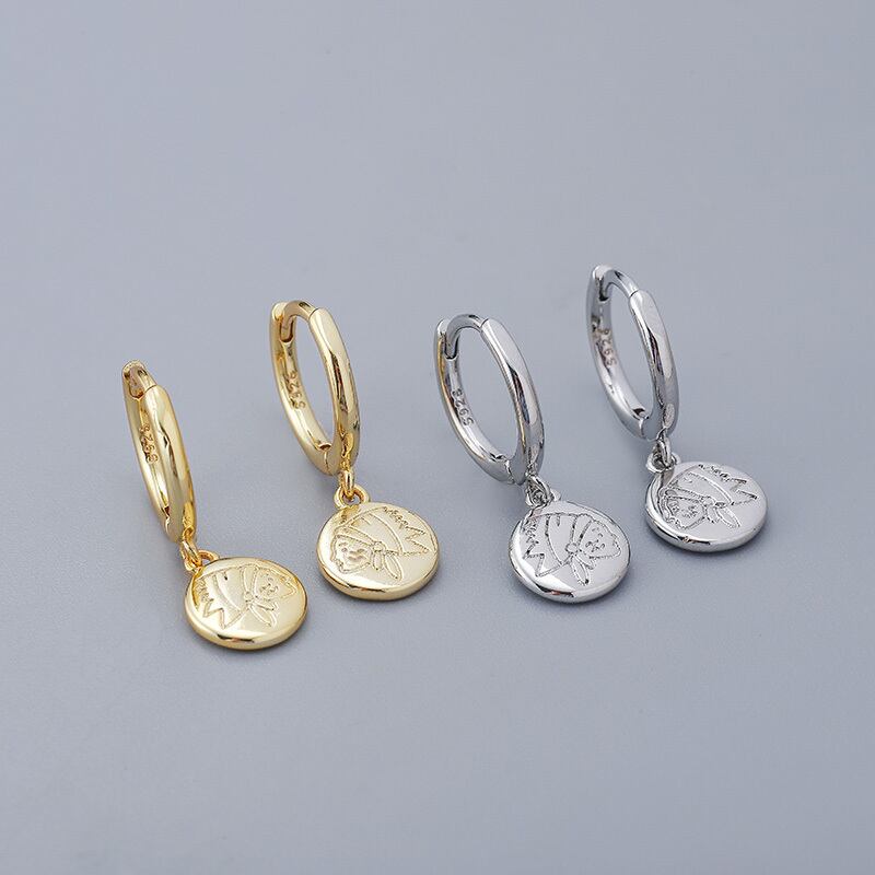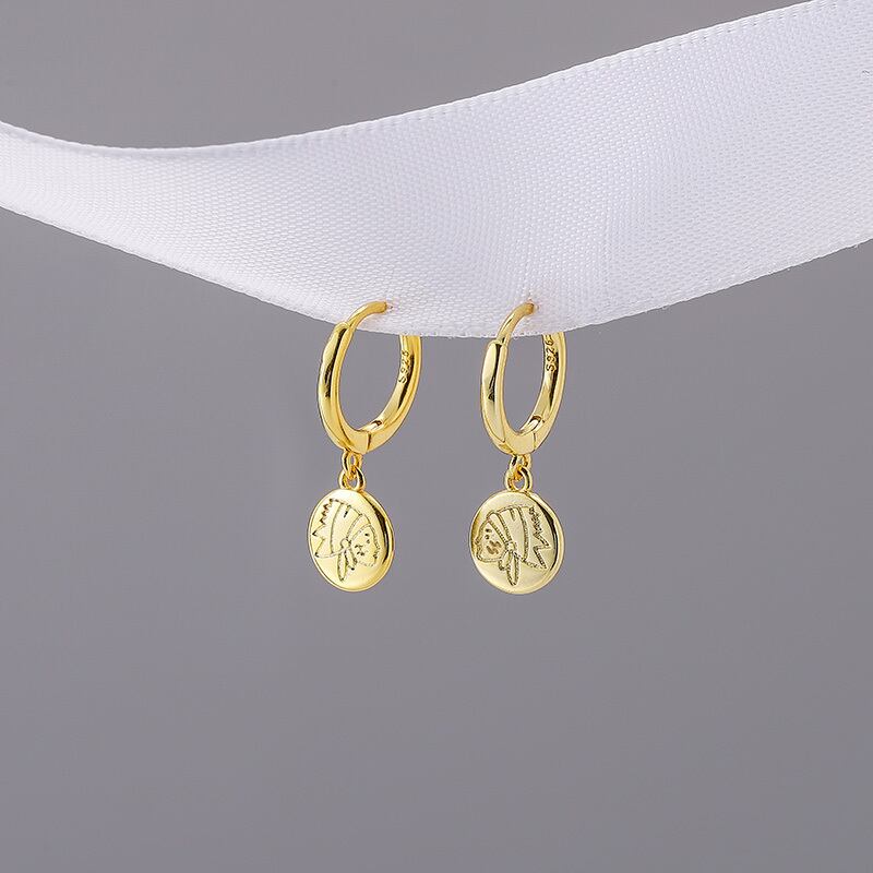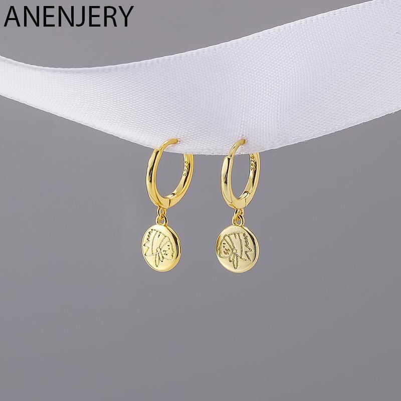送料無料 ANENJERYシルバーカラーヘッドポートレートディスクフープピアスゴールデンフレンチピアス イヤリング リング 指輪 銀 アクセサリー AE165524525863482