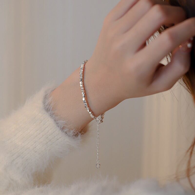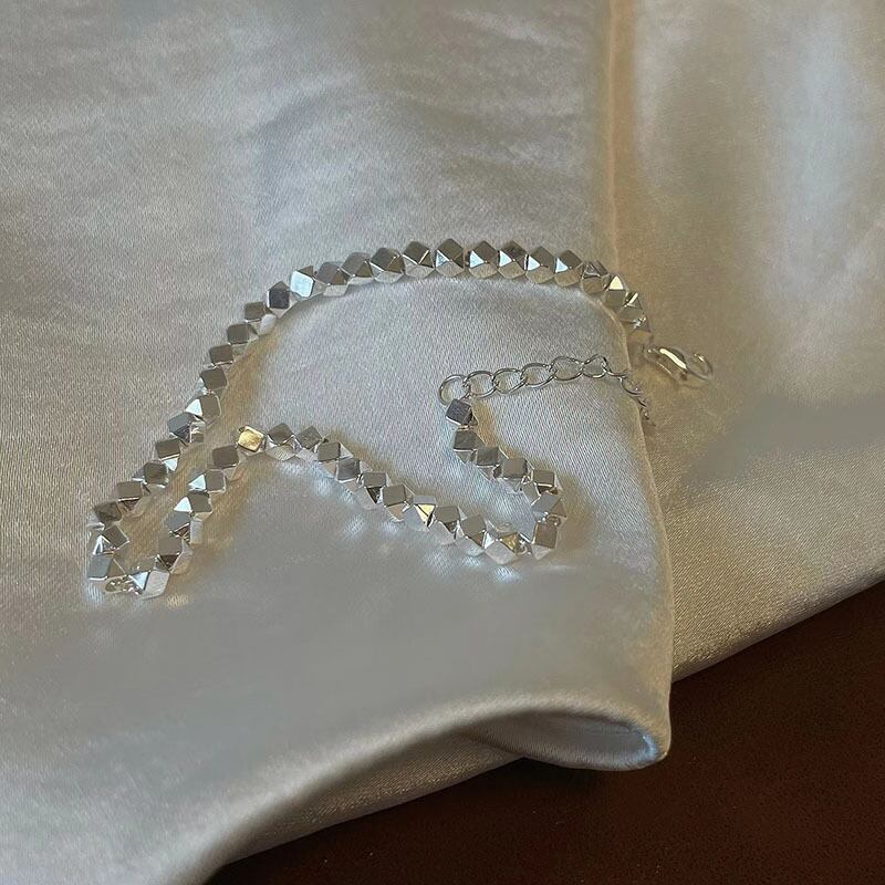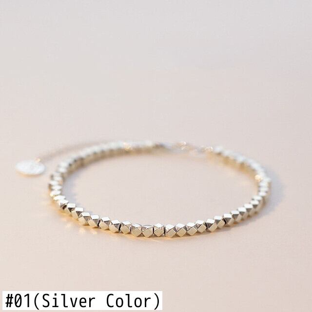 送料無料 ANENJERYシルバーカラースタッカブルポリゴンキューブブレスレットヴィンテージスムース幾何学的ブレスレットジュエリー女性男性 銀 ビンテージ アクセサリー AE165574549097863