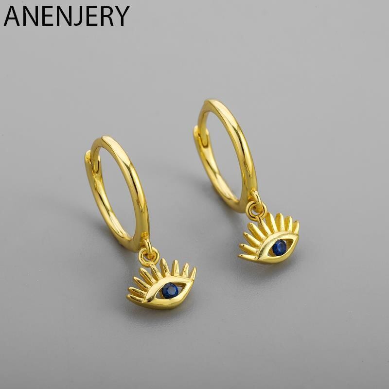 送料無料 ANENJERYシルバーカラーブルーCZアイズフープイヤリングレディースメンズジュエリーギフト2022 銀 アクセサリー AE165543539987727