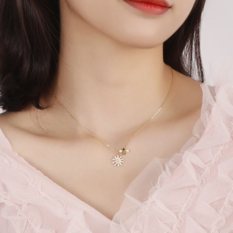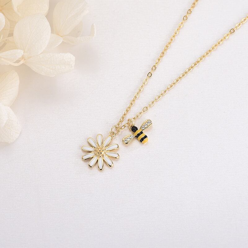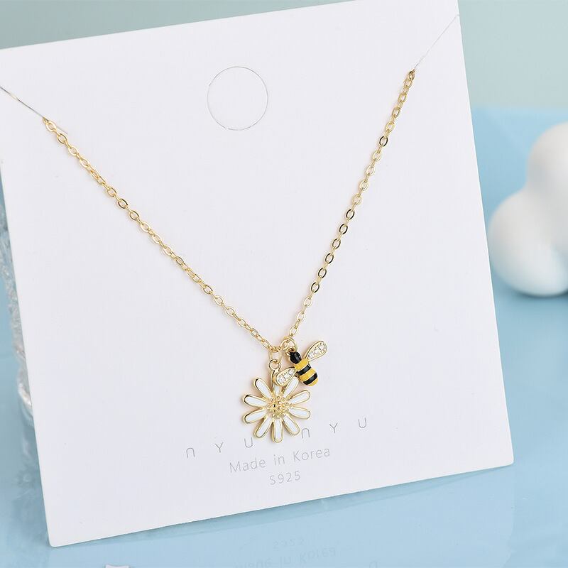 送料無料 ANENJERYシルバーカラー銅ジルコンビーデイジーフラワーペンダントネックレス女性鎖骨チェーンアクセサリー レース フラワーデザイン 銀 アクセサリー AE165523690577274
