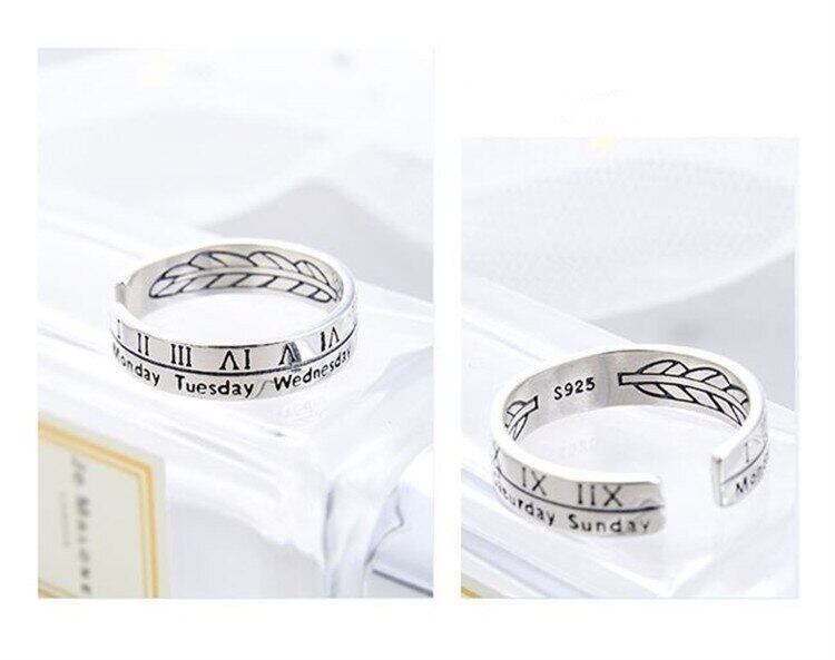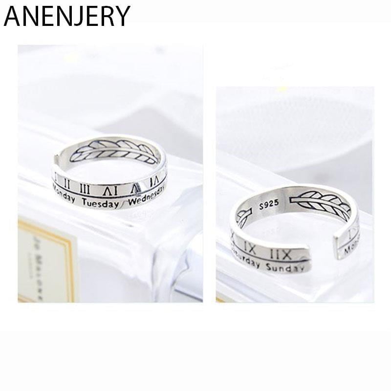 送料無料 ANENJERYシルバーカラーローマ数字ウィークデイズリングレディースジュエリーS-R402 指輪 銀 アクセサリー AE165514060920268