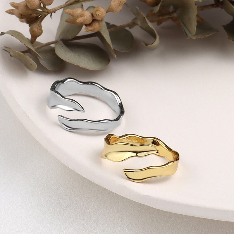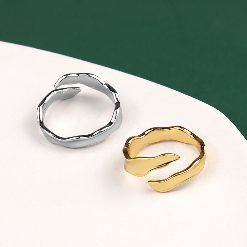 送料無料 ANENJERYシルバーカラー不規則な波のリング女性の幾何学的な創造的な花嫁のジュエリーギフト 指輪 銀 アクセサリー AE165577768966736