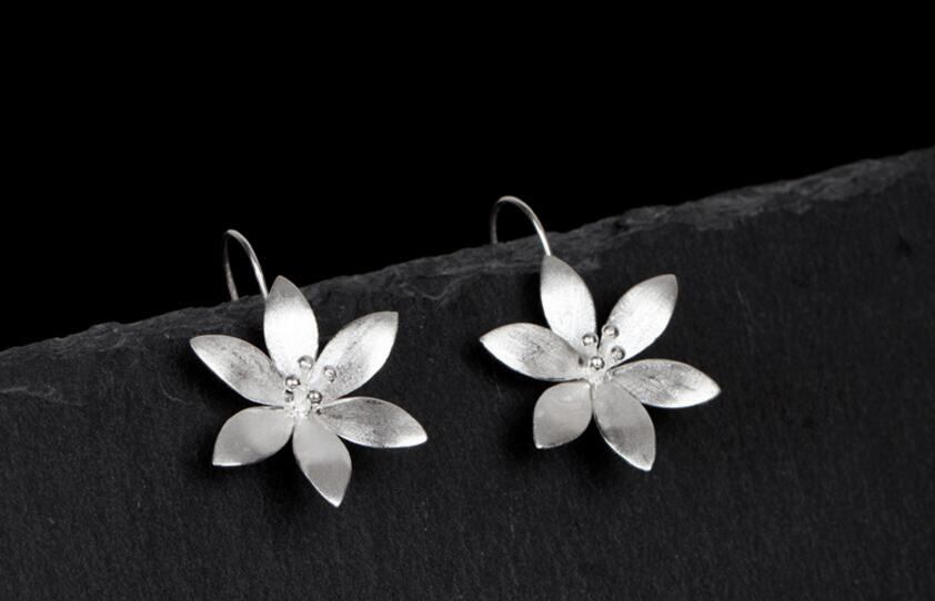 送料無料 ANENJERYシルバーカラー気質ロータスフラワーワイヤードローイングロングイヤリングイヤリングレディースパーティージュエリーS-E121 指輪 フラワーデザイン 銀 アクセサリー AE165530615170092