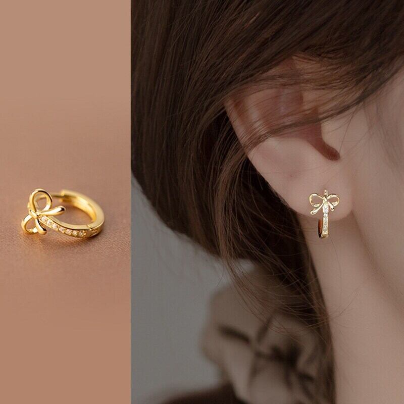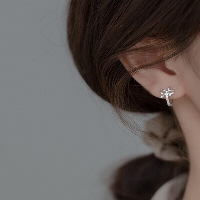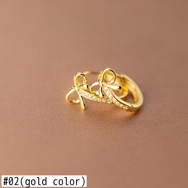 送料無料 ANENJERYシルバーカラージルコンラインホロウバタフライボウフープピアスレディーススウィートシンプル気質パーティージュエリー リボン イヤリング 大人ガーリー キュート カジュアル リング 指輪 銀 アクセサリー AE165578025452647