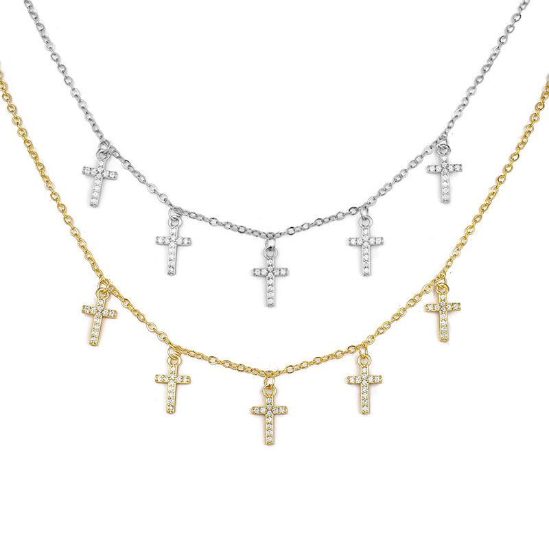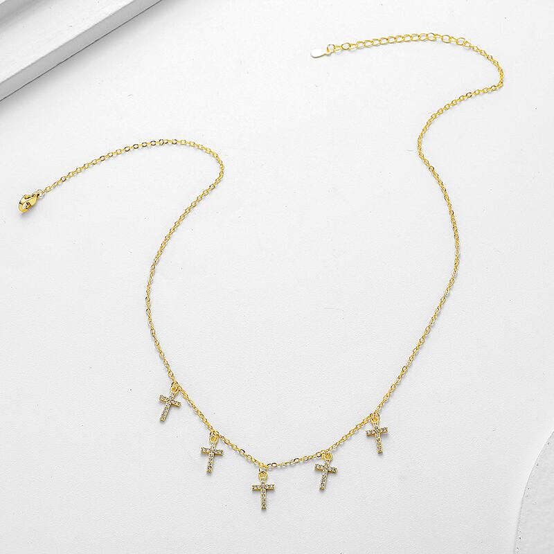 送料無料 繊細なクロスペンダントTelネックレス女性18Kゴールドメッキ鎖骨チェーンネックレスジュエリー レース アクセサリー AE165568805264448