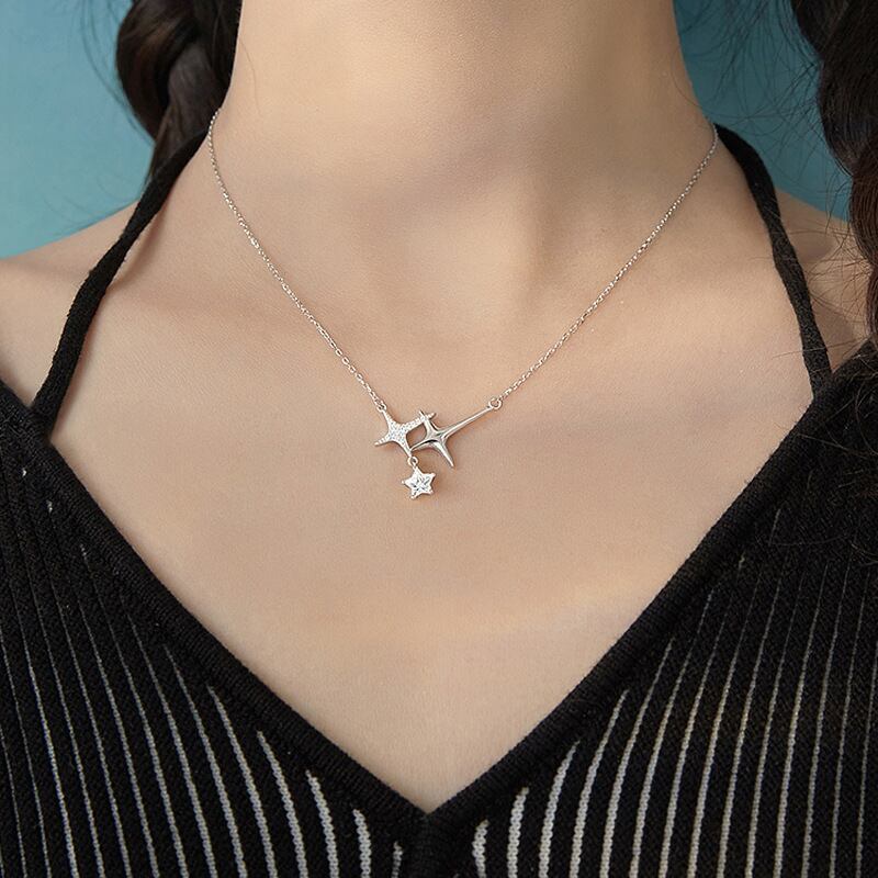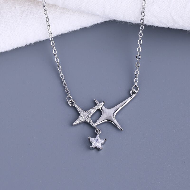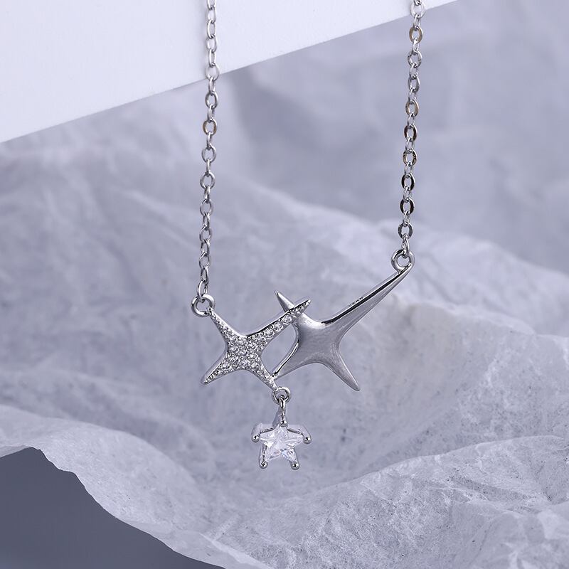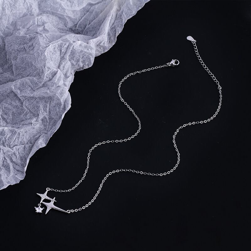 送料無料 ANENJERYシルバーカラー笑顔ジルコンクロススターネックレス女性シンプルロマンチック鎖骨チェーンネックレス レース 銀 アクセサリー AE16552704860690