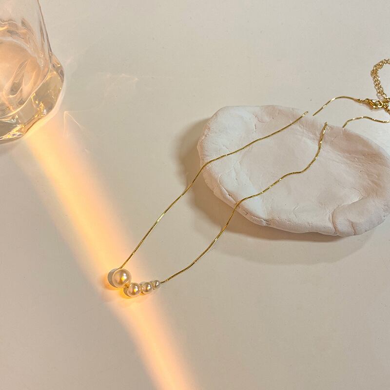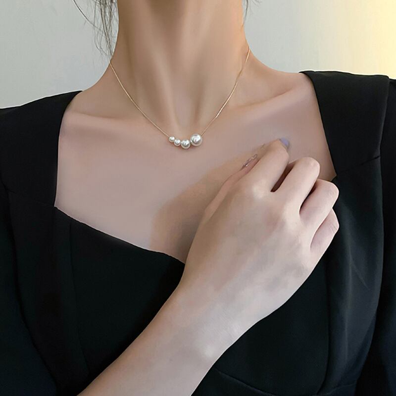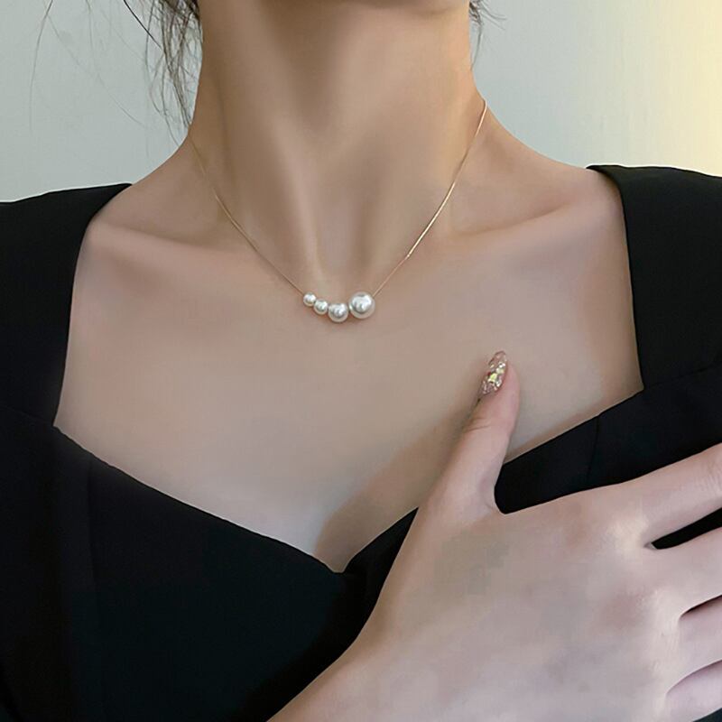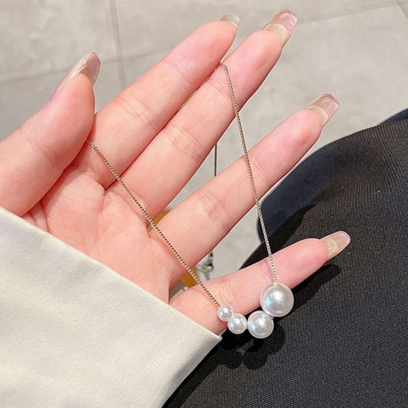 送料無料 ANENJERYシルバーカラービッグからスモールパールネックレス女性シンプルホット鎖骨チェーン レース 真珠 銀 アクセサリー AE165515503171429