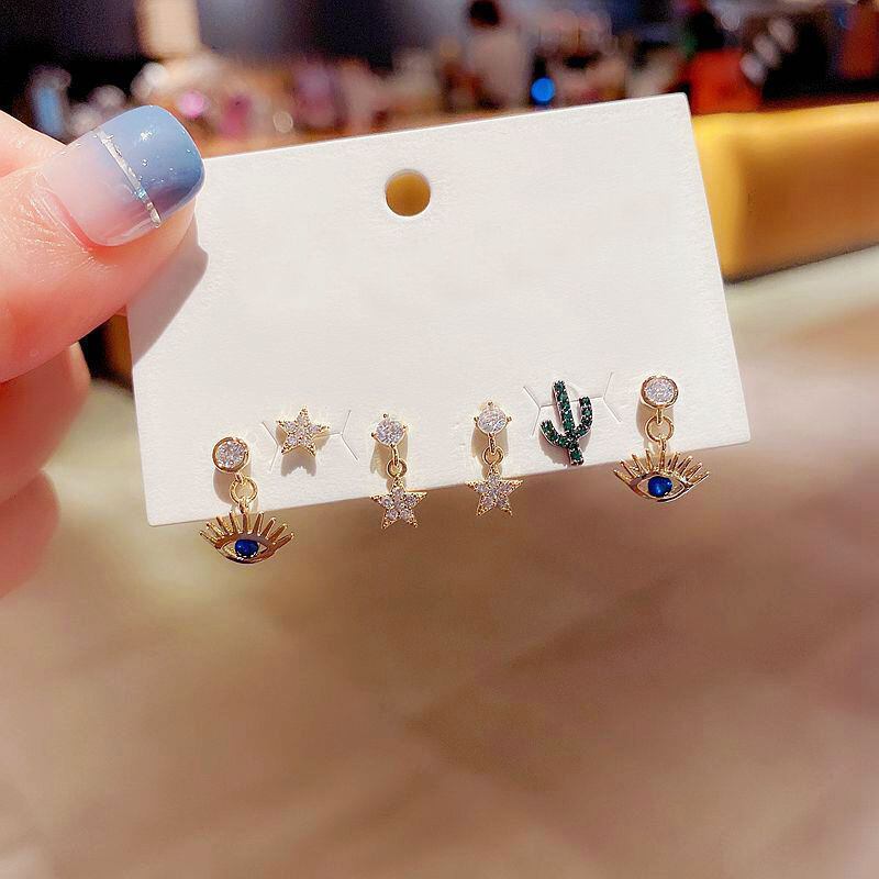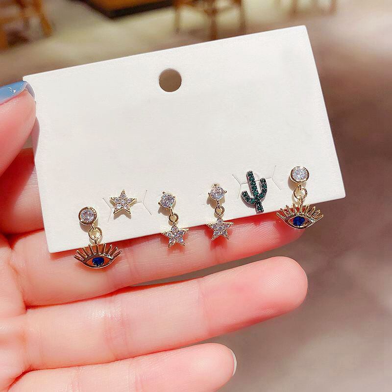送料無料 ANENJERYシルバーカラースタッドピアスセットレディース幾何学スターアイ6ピーススモールピアスセットジュエリー2022 イヤリング リング 指輪 銀 アクセサリー AE165537613624558