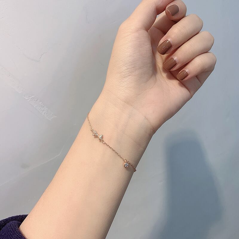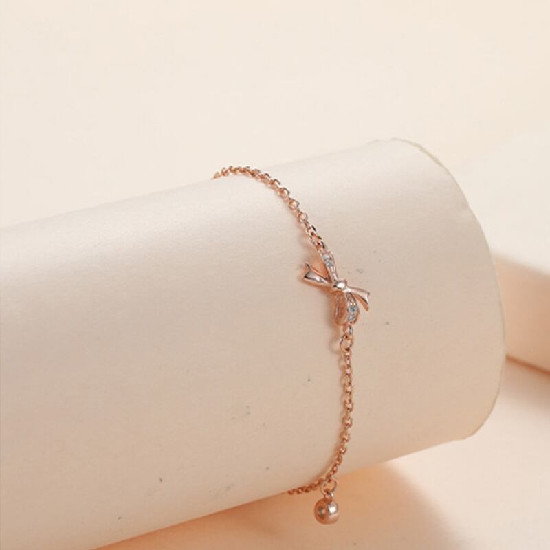 送料無料 ANENJERYシルバーカラー蝶結びブレスレット女性キュービックジルコンチャームブレスレットジュエリーギフト2022 リボン 銀 アクセサリー AE165565911469544