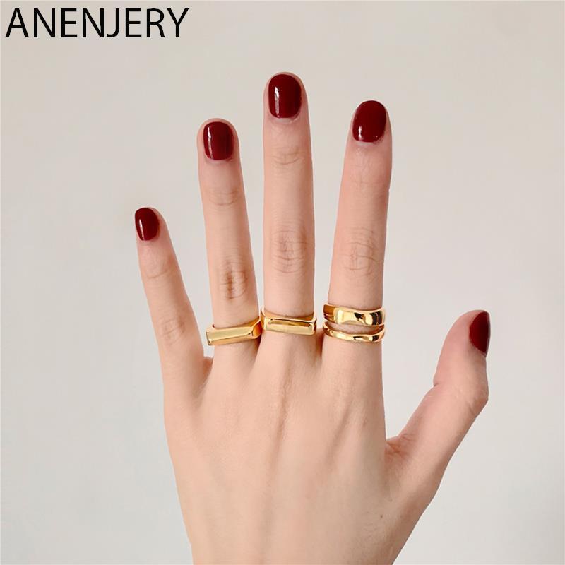 送料無料 ANENJERYシルバーカラー幾何学リング女性男性ゴールドシルバーオープンフィンガーリングジュエリー 指輪 銀 アクセサリー AE165552341365419