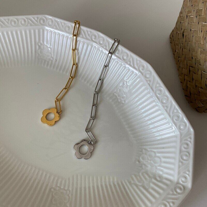 送料無料 ANENJERYシルバーカラーホロウフラワーリンクチェーンブレスレットレディースOTクラスプアジャスタブルブレスレットジュエリーギフトS-B443 フラワーデザイン 銀 アクセサリー AE16558243519201