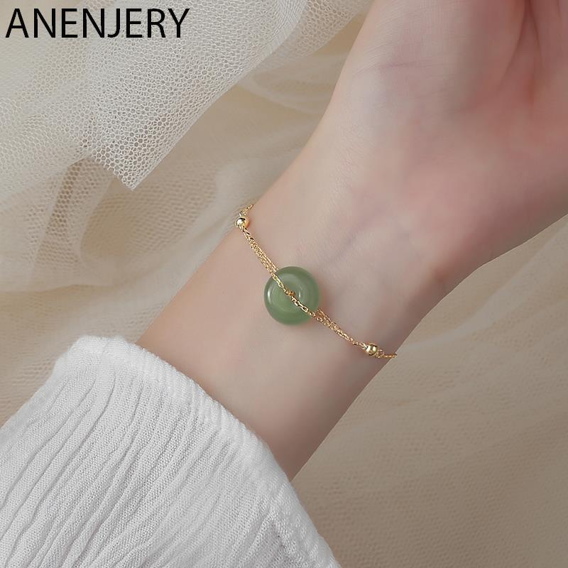 送料無料 ANENJERYシルバーカラーラウンドグリーンストーンゴールドブレスレット女性ガールパーティージュエリーアクセサリーアニバーサリーギフトS-B438 銀 アクセサリー AE165566739678254