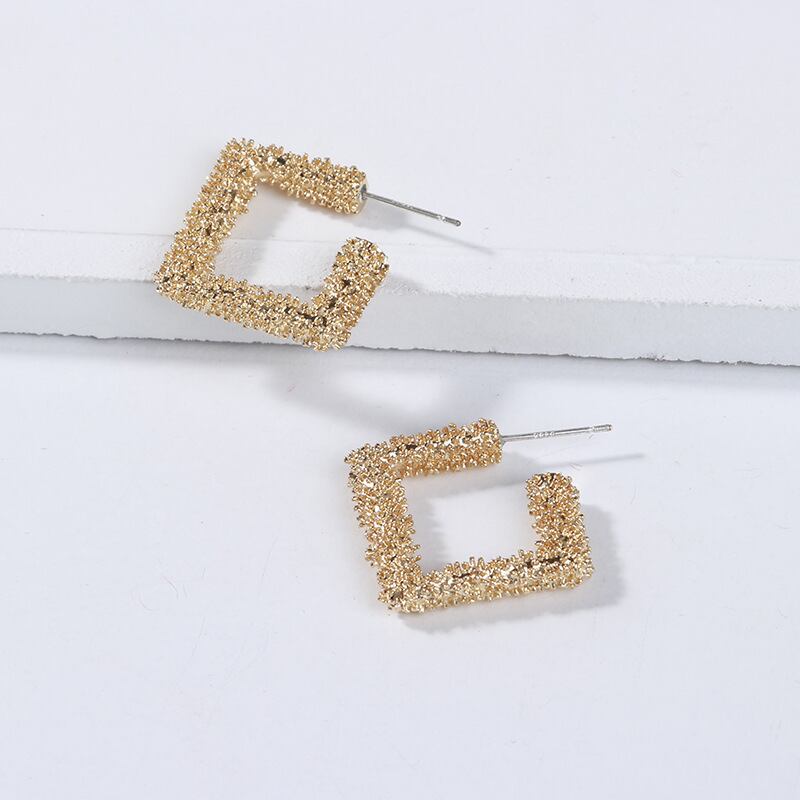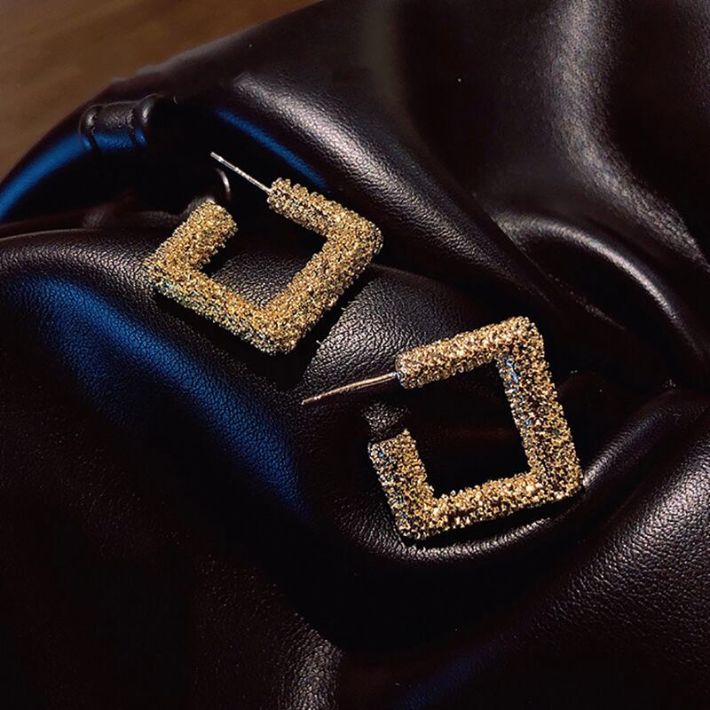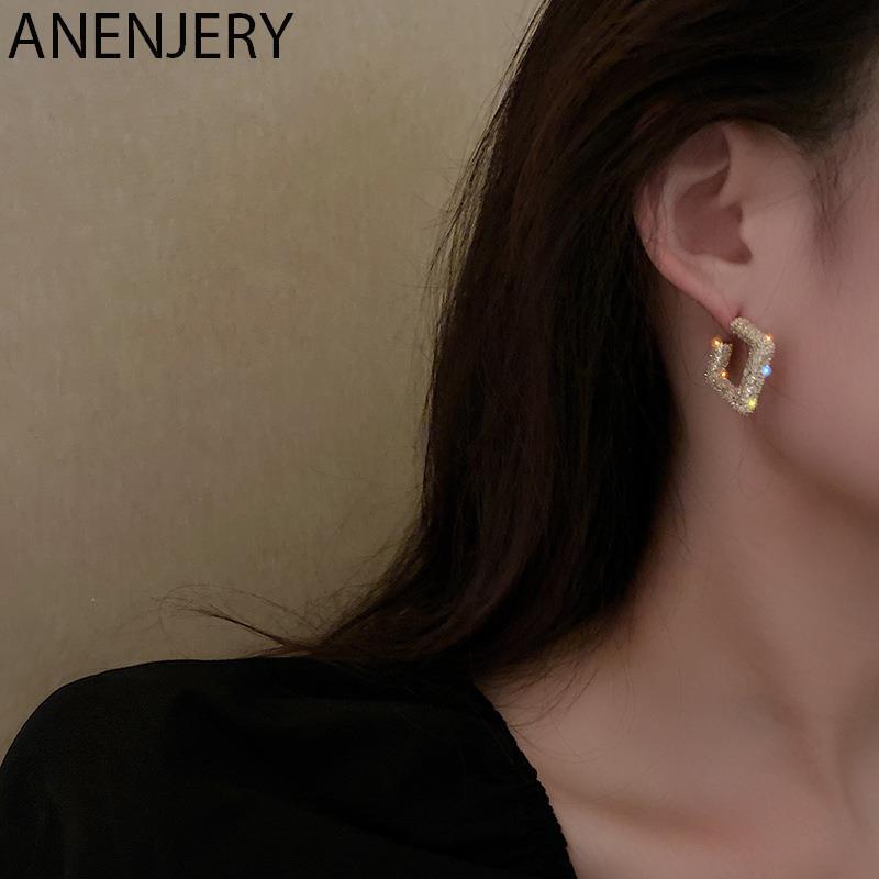 送料無料 ANENJERYシルバーカラー幾何学的なスクエアスタッドピアスフレンチビッグシャイニーラグジュアリーピアス イヤリング リング 指輪 銀 スクウェア アクセサリー AE165515081138553