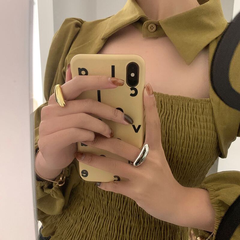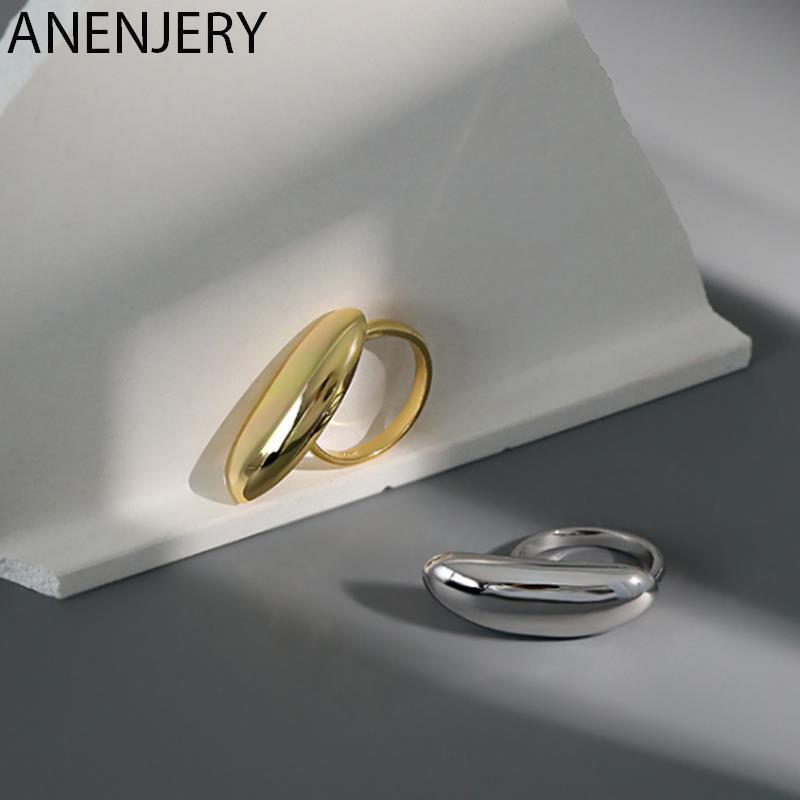 送料無料 ANENJERYシルバーカラースムースジオメトリックリングレディースメンズゴールドシルバーウォータードロップフィンガーリングジュエリー 指輪 銀 アクセサリー AE165597631515482