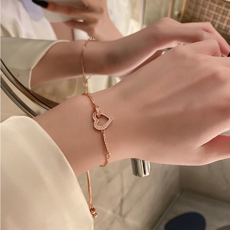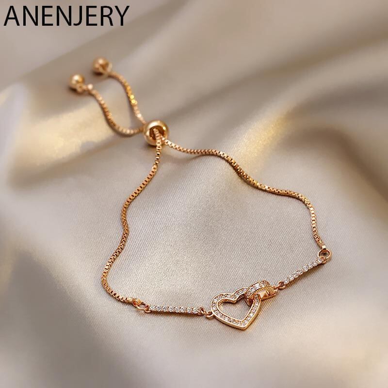 送料無料 ANENJERYシルバーカラーシャイニージルコンハートブレスレットレディースウェディングギフト豪華なジュエリーアクセサリー 銀 アクセサリー AE165559529091568