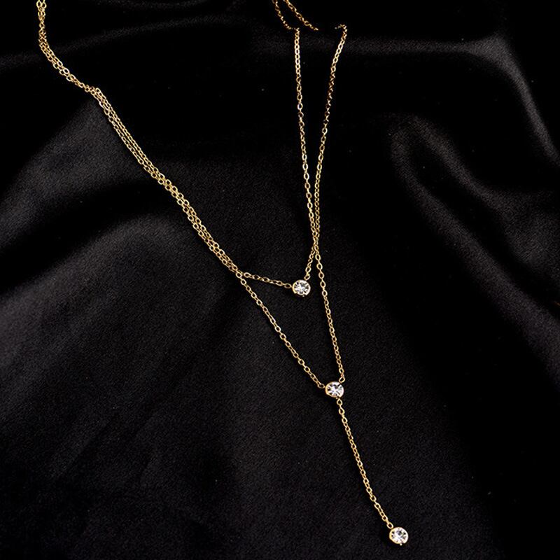 送料無料 ANENJERYシルバーカラーダブルレイヤージルコンネックレス女性鎖骨チェーン高級気質ジュエリーアクセサリー レース 銀 アクセサリー AE165599788191976