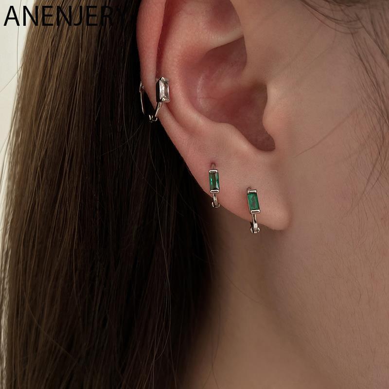 送料無料 ANENJERYシルバーカラーSuqareジルコンフープピアス女性スモールデイリーイヤリングパーティージュエリー 指輪 銀 アクセサリー AE165516356328289