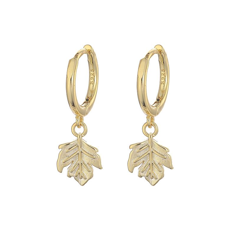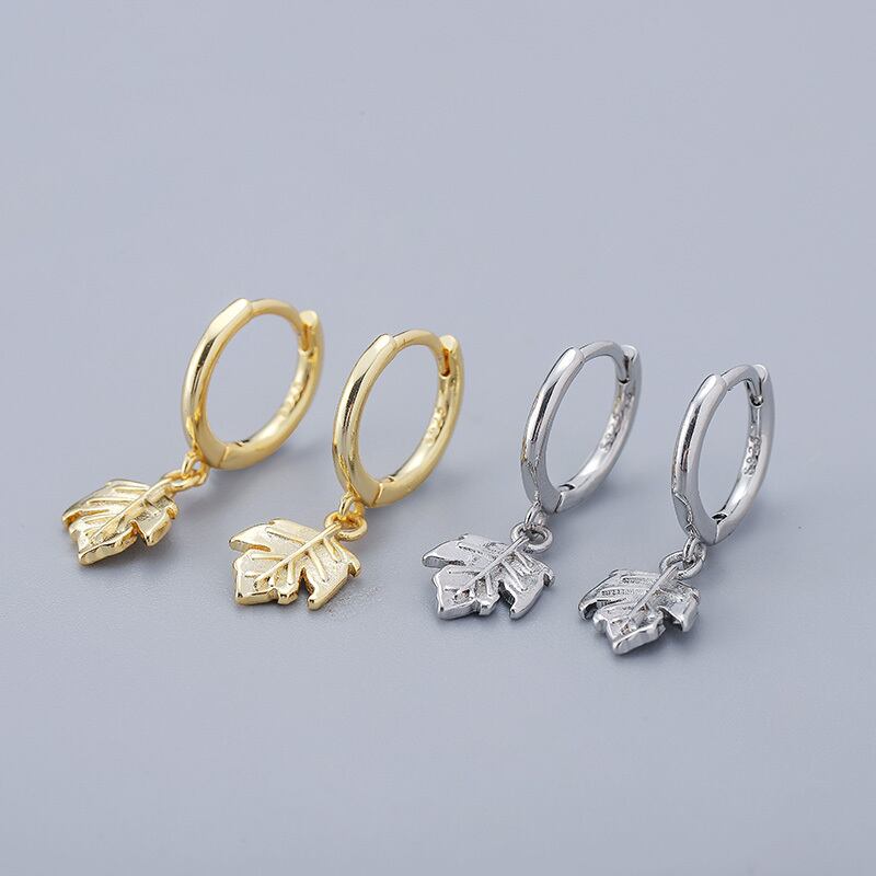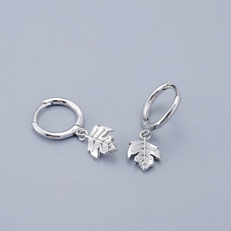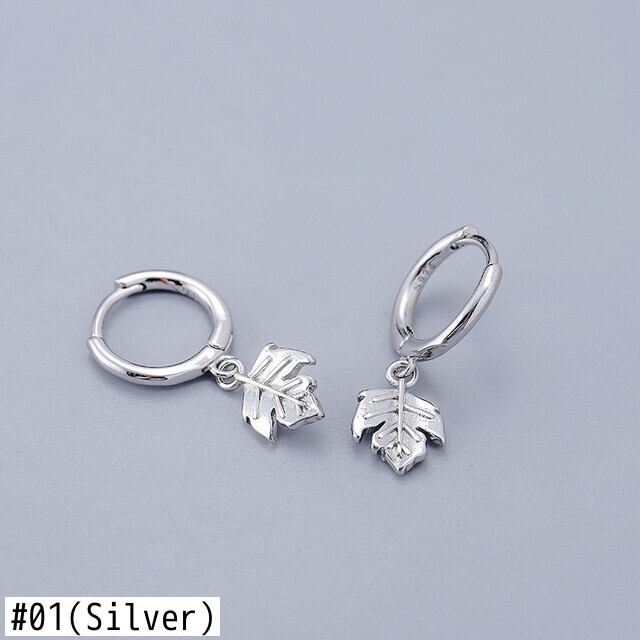 送料無料 ANENJERYシルバーカラーの葉フープイヤリングシンプルなゴールデンフレンチイヤリング 指輪 銀 アクセサリー AE165557371309121