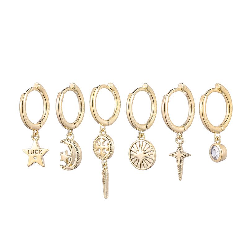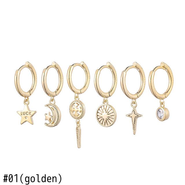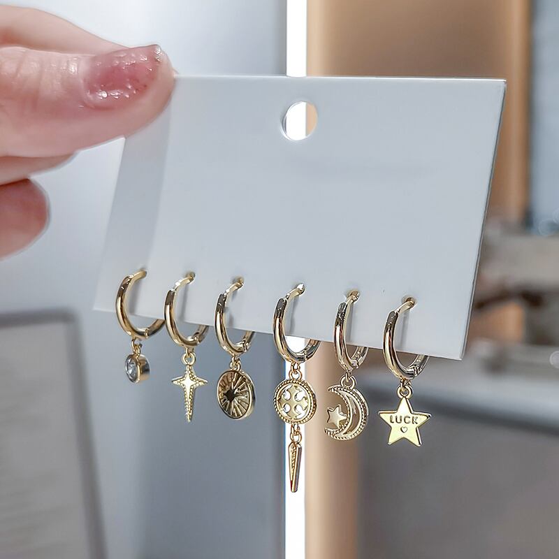送料無料 ANENJERY6個/セットシルバーカラーサンムーンスターフープピアスセットかわいい光沢のある女性だけ手作りヒップホップガールパーティージュエリー イヤリング 大人ガーリー スウィート キュート カジュアル リング 指輪 銀 シンプル アクセサリー AE165548428012211