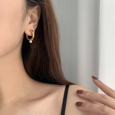 送料無料 ANENJERYシルバーカラーパールチャンキーフープピアス女性フレンチクリエイティブゴールドピアスジュエリー イヤリング 真珠 リング 指輪 銀 アクセサリー AE16558897511390