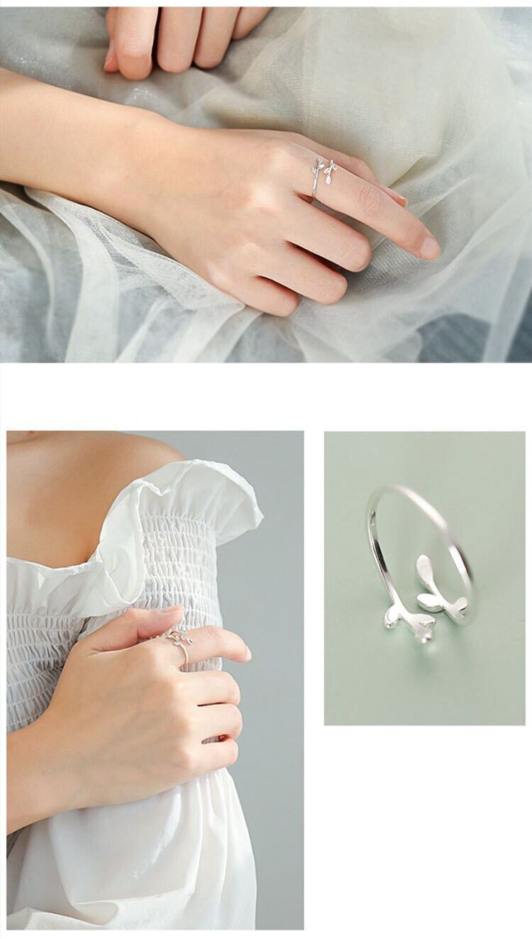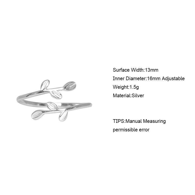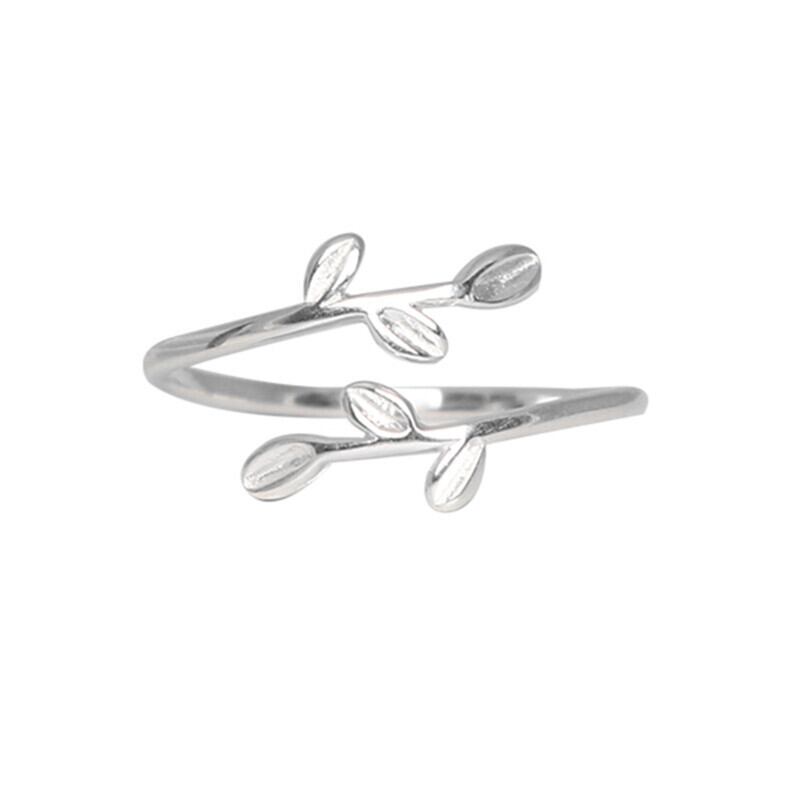 送料無料 ANENJERYシルバーカラー2022リーフブランチオープンリングレディースフィンガージュエリーギフト発送S-R520 指輪 銀 アクセサリー AE165520237092345