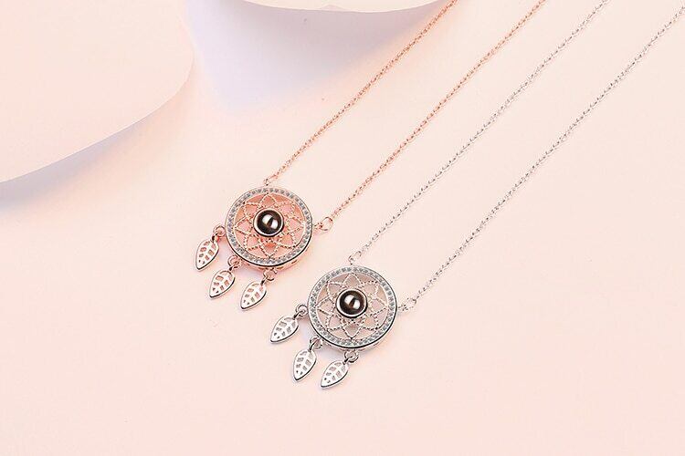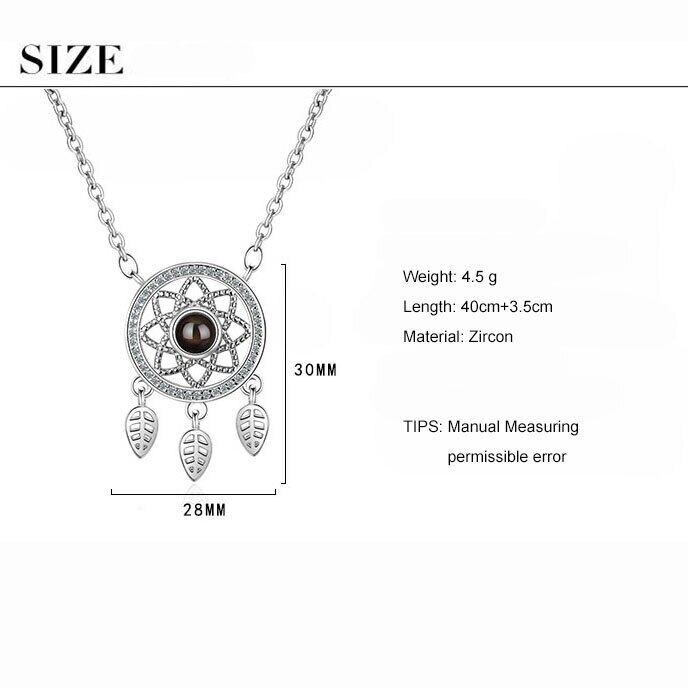 送料無料 ANENJERYシルバーカラードリームキャッチャーネックレス2色プロジェクション100言語ネックレス女性ギフトS-N421 レース 銀 アクセサリー AE165539396090391
