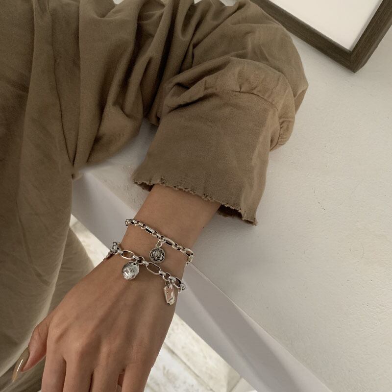 送料無料 ANENJERYヴィンテージエレファントラウンドタグブレスレットレディースメンズ太いチェーンシルバーカラーブレスレットジュエリーS-B456 銀 ビンテージ アクセサリー AE165516755723339