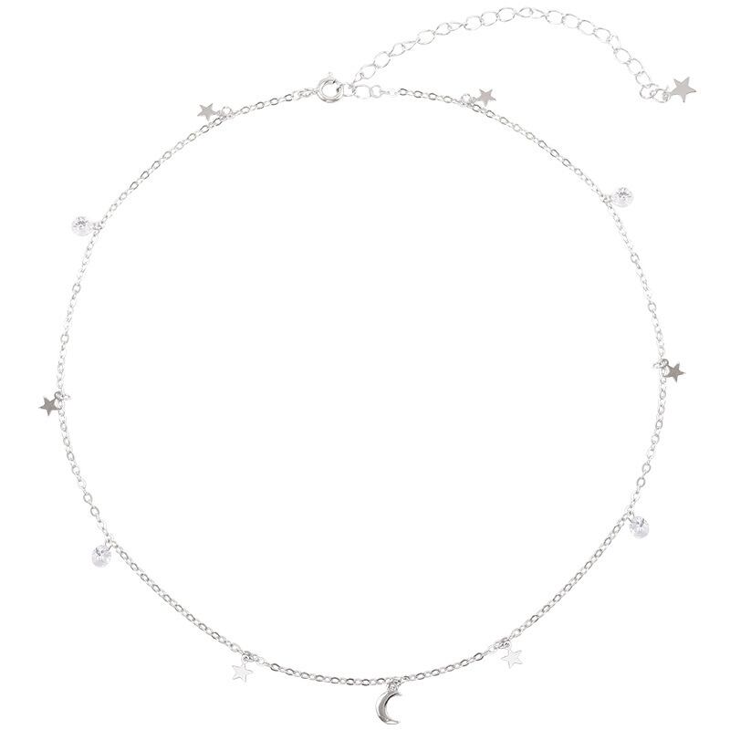 送料無料 ANENJERYシルバーカラームーンスターネックレス女性鎖骨チェーン甘いかわいいジュエリーパーティーギフト レース 大人ガーリー スウィート キュート カジュアル 銀 アクセサリー AE165531355007092