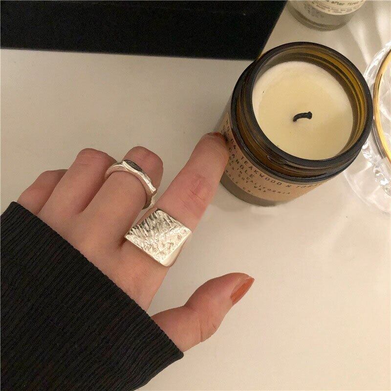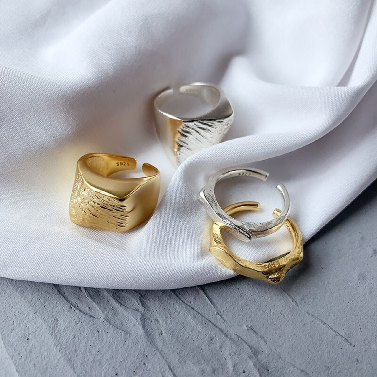 送料無料 ANENJERYシルバーカラーヨーロッパハンドメイド不規則な幅の表面オープンリング女性男性凹面凸ジュエリーS-R806 指輪 銀 アクセサリー AE165592628692197