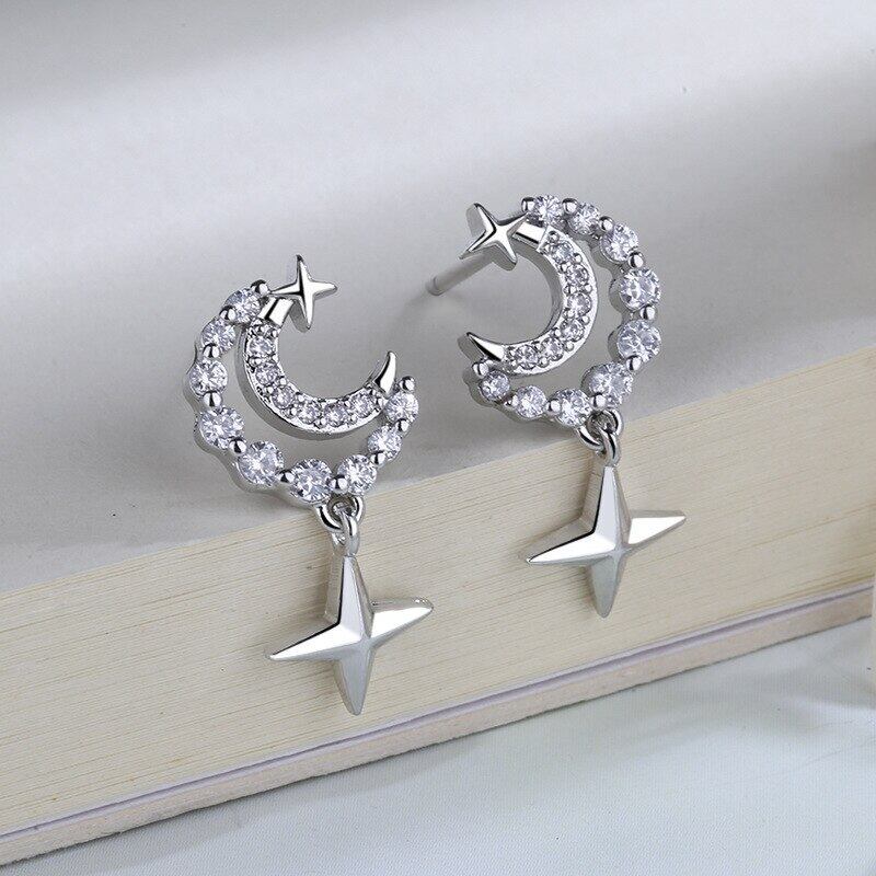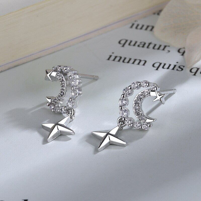 送料無料 ANENJERYシルバーカラー銅キュービックジルコンスターとムーンイヤリングチャームイヤリング女性男性女の子ジュエリーS-E1316 指輪 銀 アクセサリー AE165554347922231
