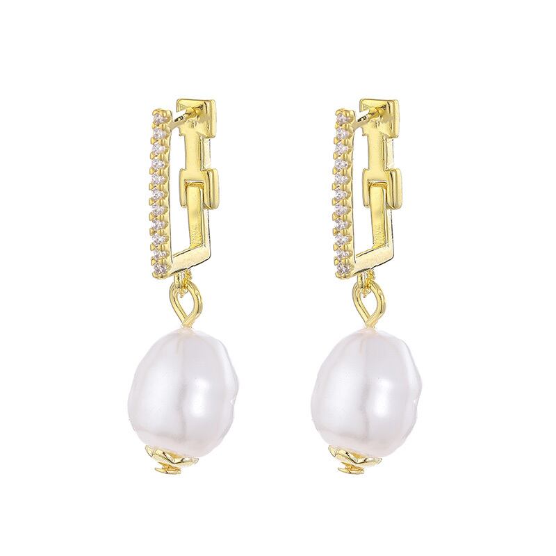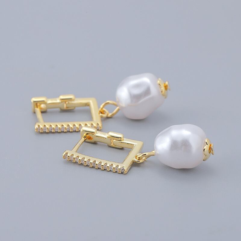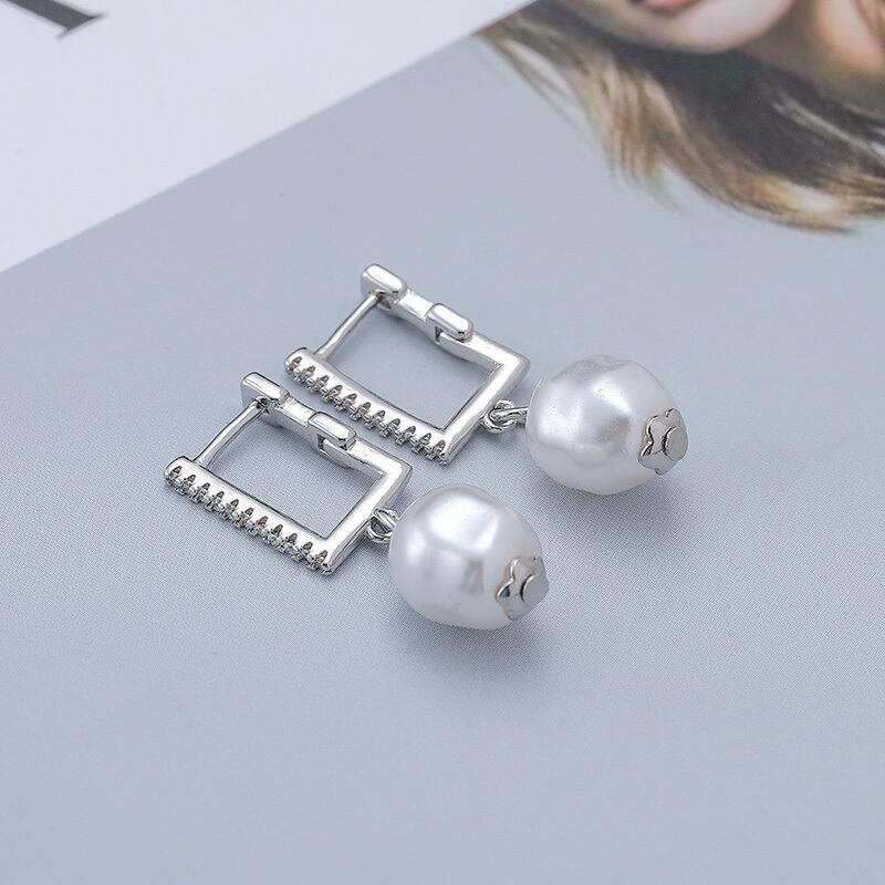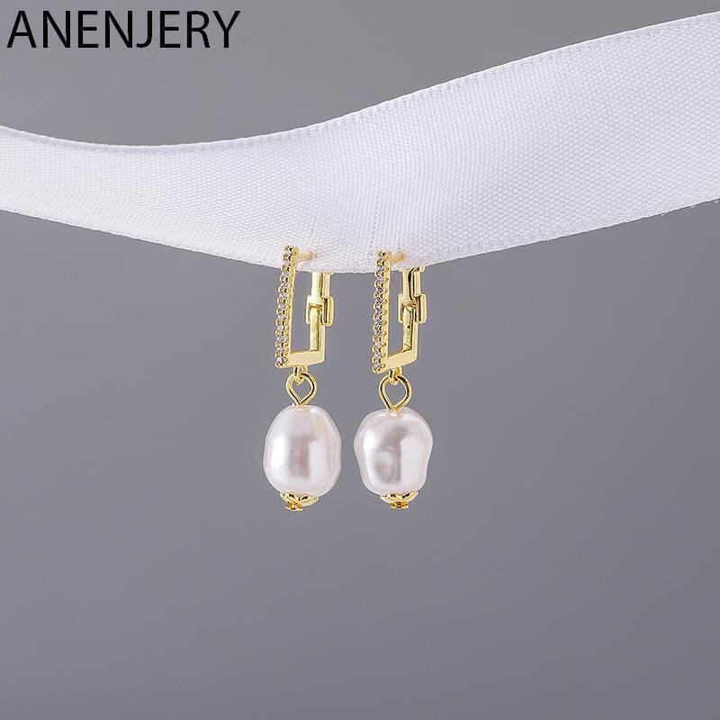 送料無料 ANENJERYシルバーカラーマイクロジルコン長方形パールペンダントフープピアスガールウェディングジュエリー イヤリング 真珠 リング 指輪 銀 アクセサリー AE165525181450862