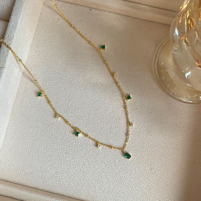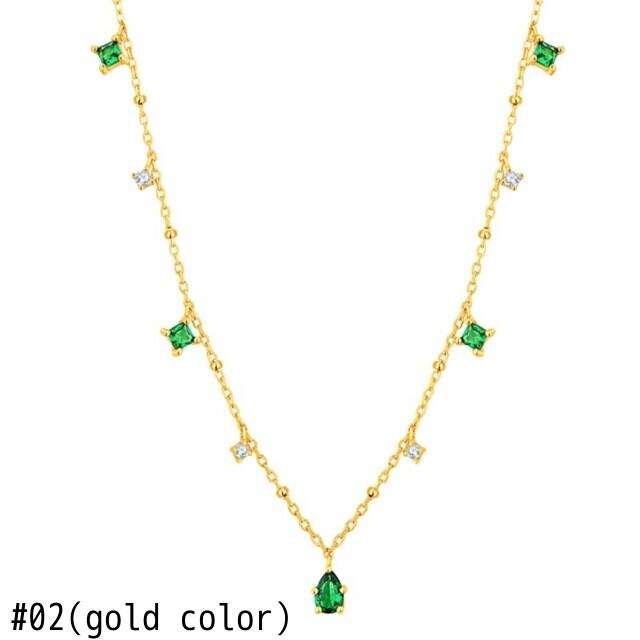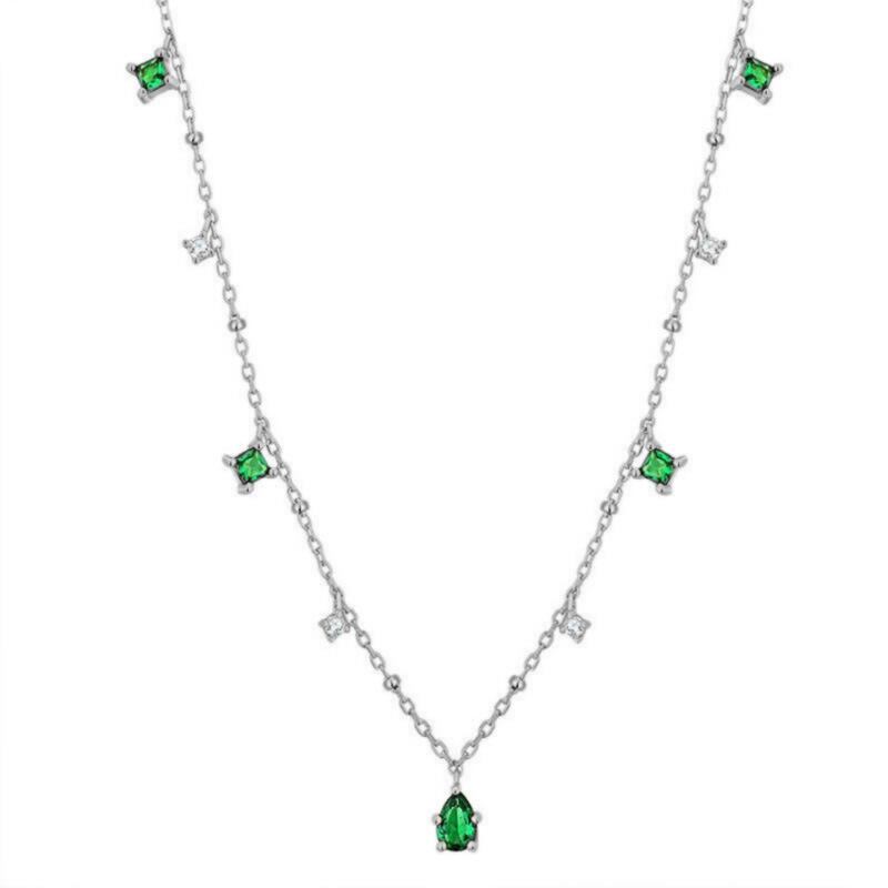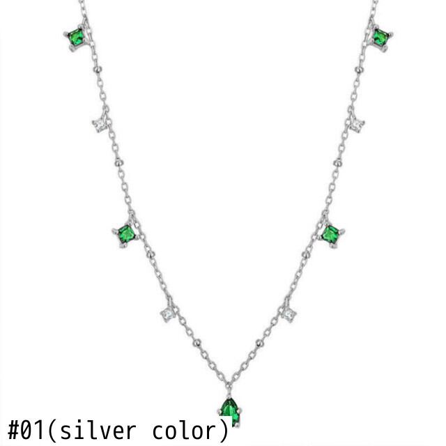 送料無料 ANENJERYシルバーカラーチョーカーネックレス女性絶妙なグリーンジルコン鎖骨チェーンネックレスギフトS-N742 レース 銀 アクセサリー AE16558935439129