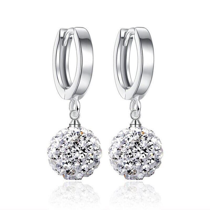 送料無料 ANENJERYシルバーカラーフルジルコンクリスタルボールムーンストーンパールペンダントフープピアスレディースジュエリーギフトS-E317 イヤリング 真珠 リング 指輪 銀 アクセサリー AE165584799313649