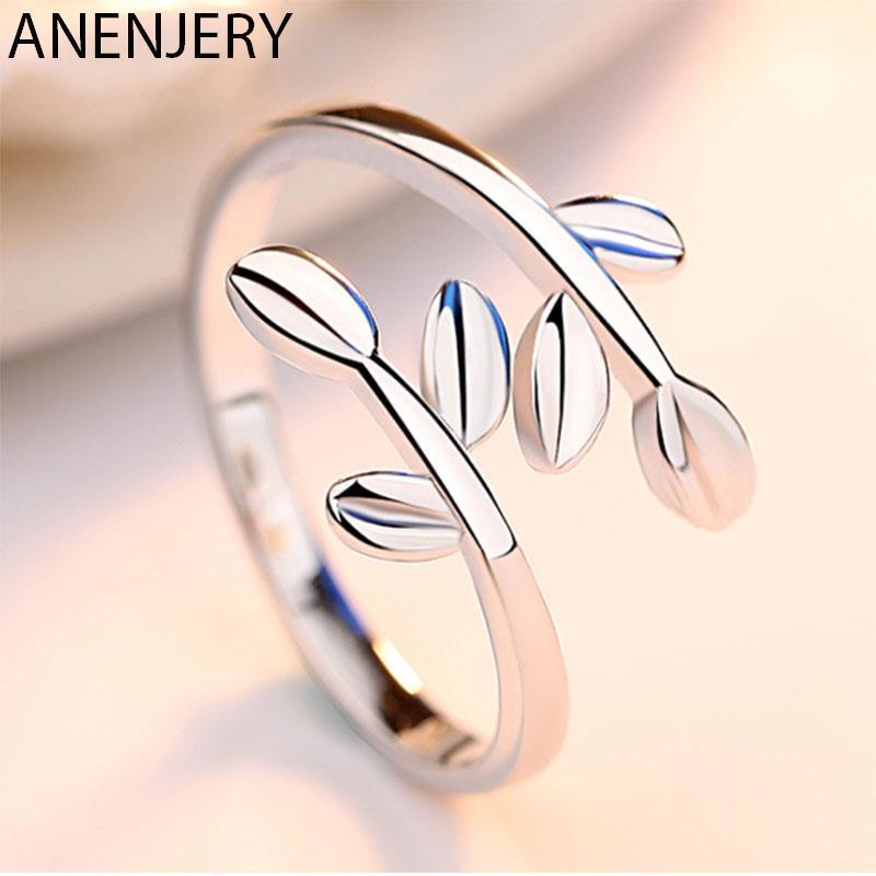 送料無料 ANENJERYシルバーカラーシンプルリーフオープニングリングレディースバゲフェメフS-R74 フェミニン 指輪 銀 アクセサリー AE165512703700797