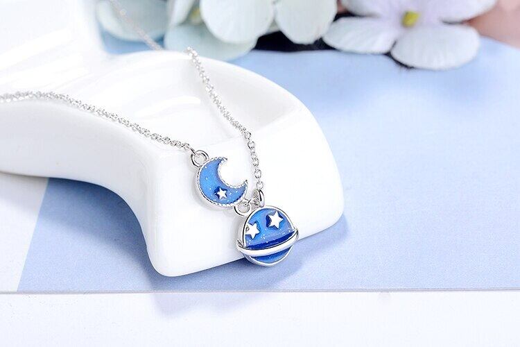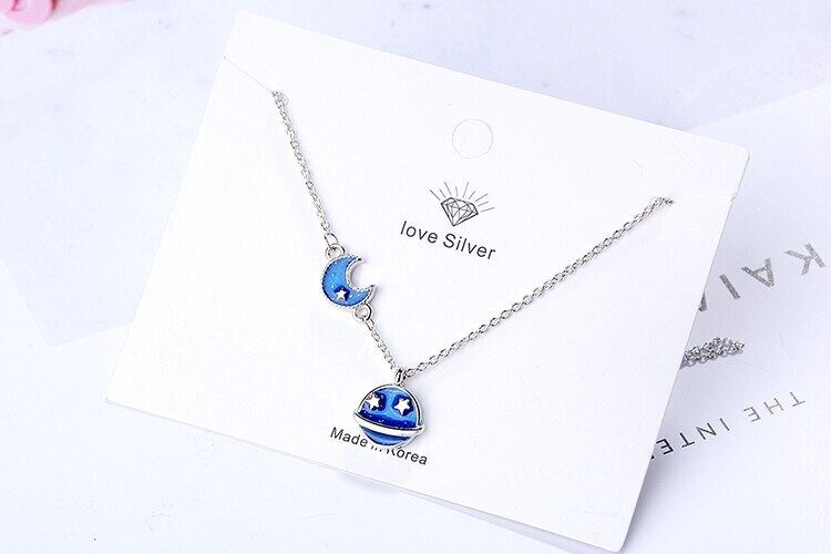 送料無料 ANENJERYシルバーカラーネックレスグレーズブルースカイムーンスターネックレスレディースギフトS-N09 レース 銀 アクセサリー AE165578751046044