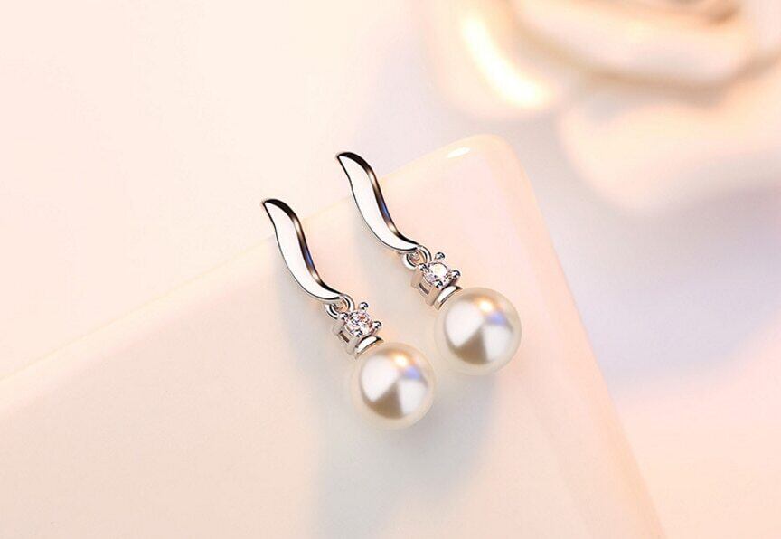 送料無料 ANENJERYシルバーカラーシンプルシルバーカラーパールジルコンピアスレディースパーティージュエリーS-E183 イヤリング 真珠 リング 指輪 銀 アクセサリー AE165523921379244