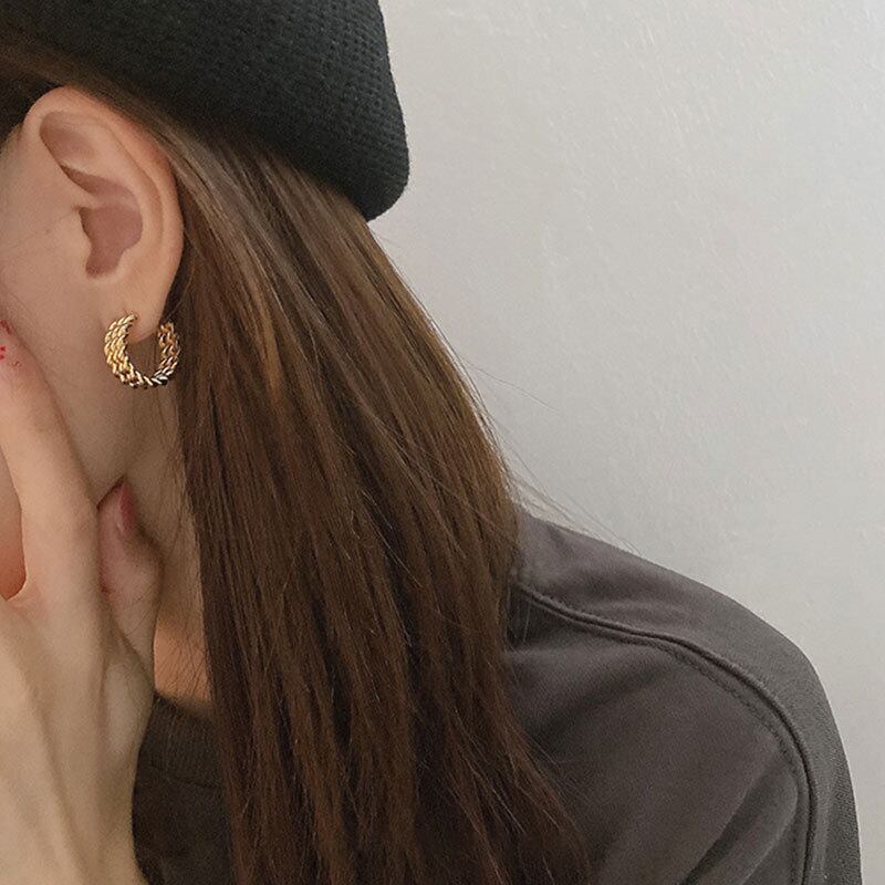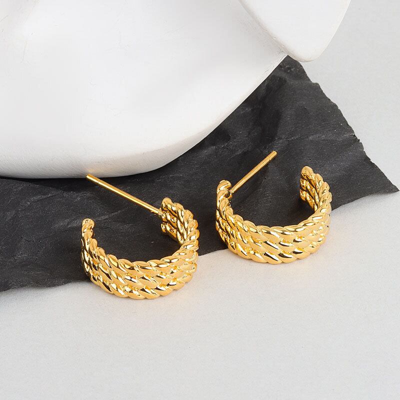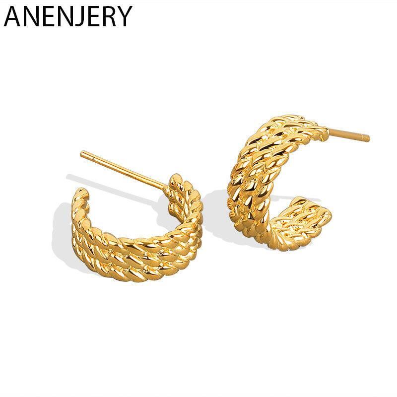 送料無料 ANENJERYシルバーカラーC型スタッドピアス女性多層ツイストロープスタッドピアスジュエリー イヤリング マルチレイヤー リング 指輪 銀 アクセサリー AE165590651146506