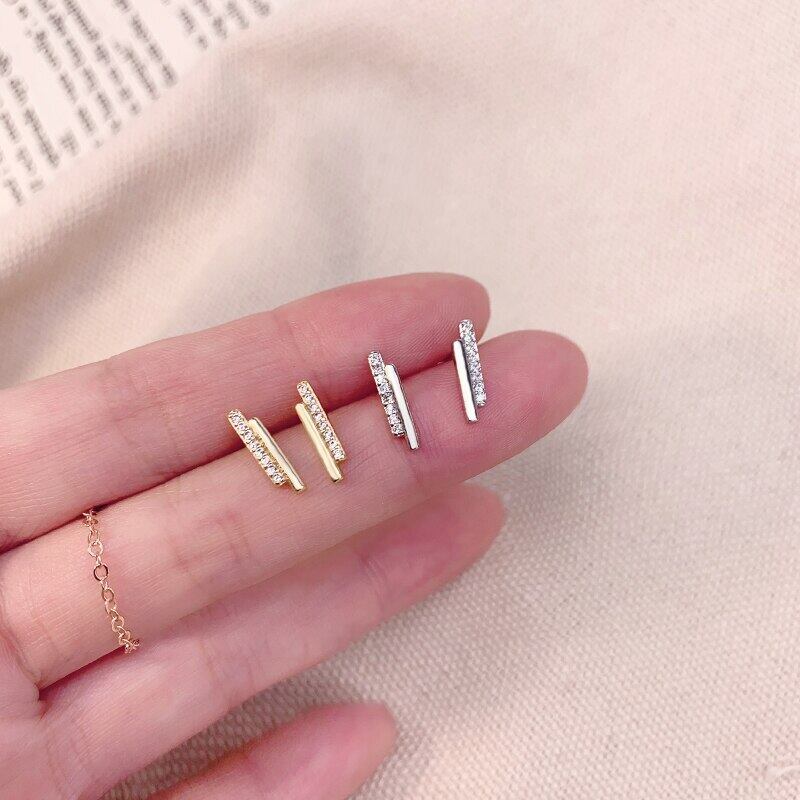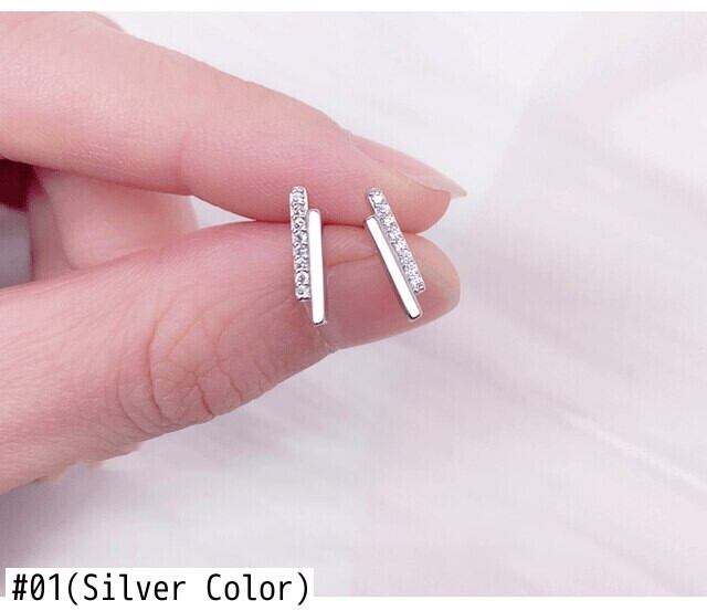 送料無料 ANENJERYシルバーカラーグロメトリックストリップスタッドピアスレディースガールズキュービックジルコンジュエリーデイリーアクセサリーS-E1255 イヤリング リング 指輪 銀 アクセサリー AE165596018187800